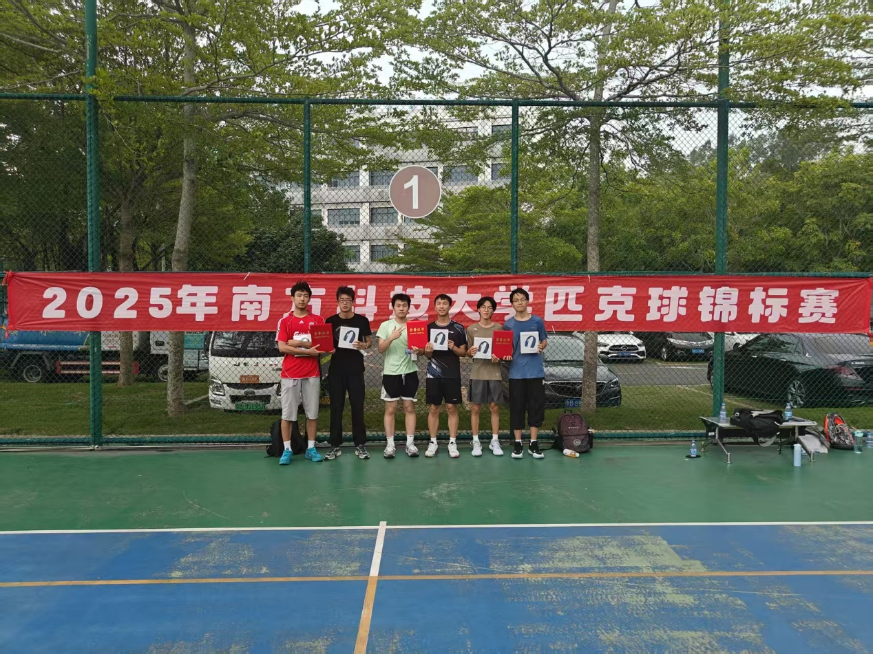 5月18日,15:00-18:00,南方科技大学2025年匹克球锦标赛在欣园篮球场1号场地成功举办,此次赛事由南方科技大学体育中心主办,南科大匹克球队、匹克球社承办,本次比赛设男子单打、混合双打、男子双打三个项目,参赛运动员必须获得2024年或2025年南科大匹克球通级赛一、二级证书方能报名参加。此次比赛获奖名单如下: