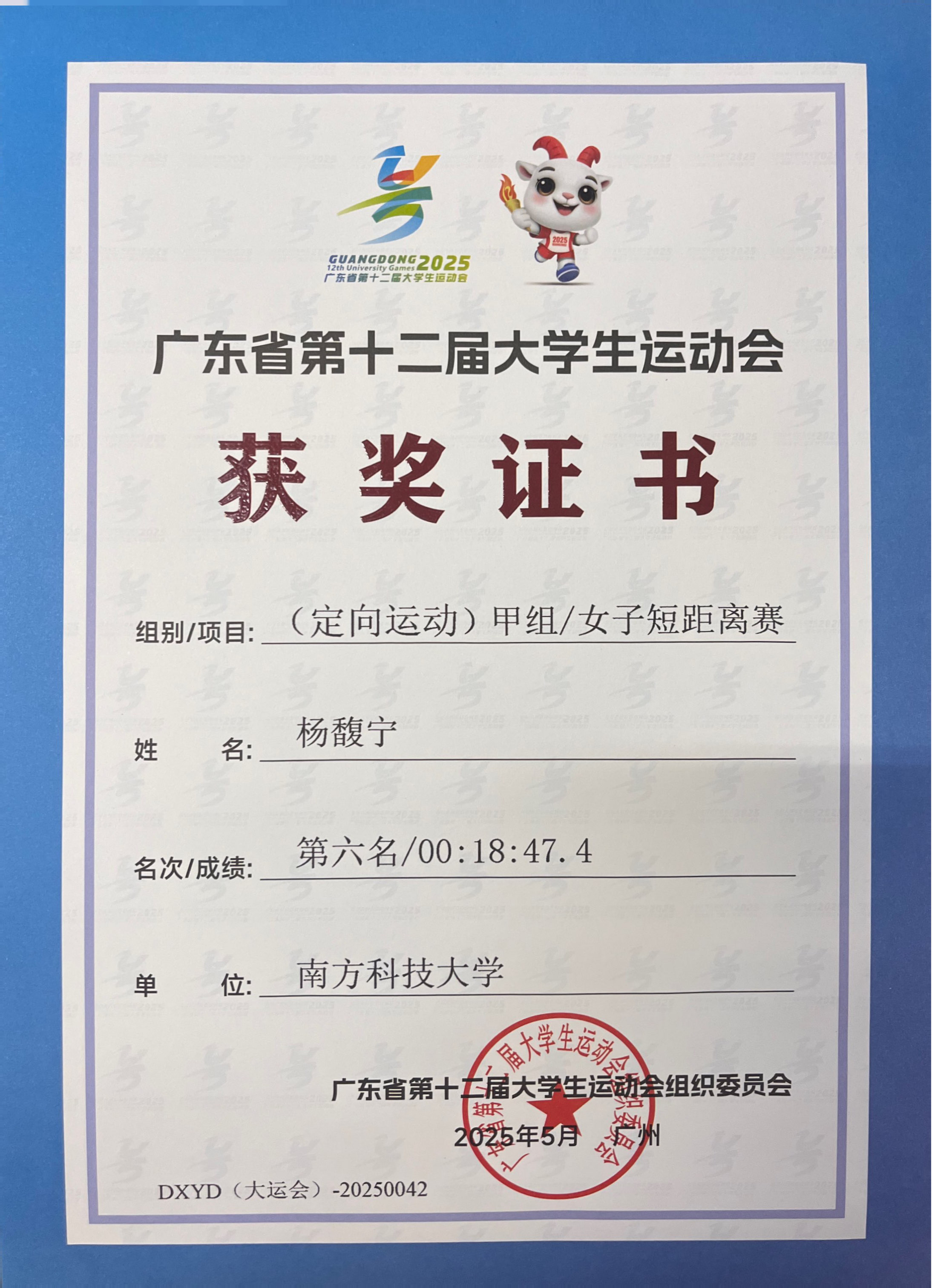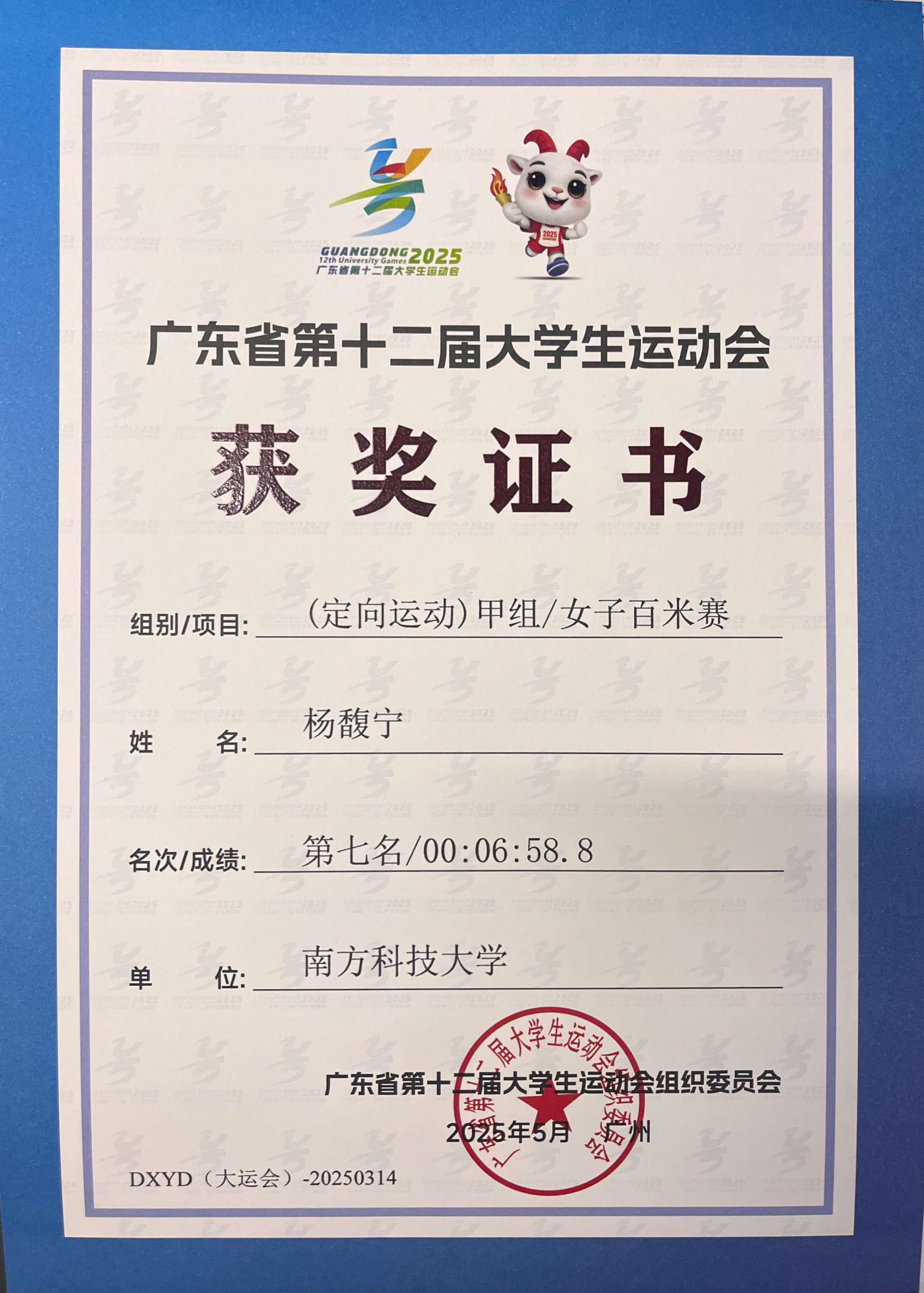 我校共派出8名队员参赛,力争突破。比赛期间,天公不作美,雨中作战。恶劣的天气给队员们带来很大的挑战。但我校队员们依然迎难而上,风雨前行。为每一个打卡点追求更快,更准。为每分每秒争取竞胜时间。在四天的激烈了竞争中,我校队员杨馥宁同学斩获女子短距离赛第六名,百米定向赛第七名。梁锡元老师获得体育道德风尚奖。