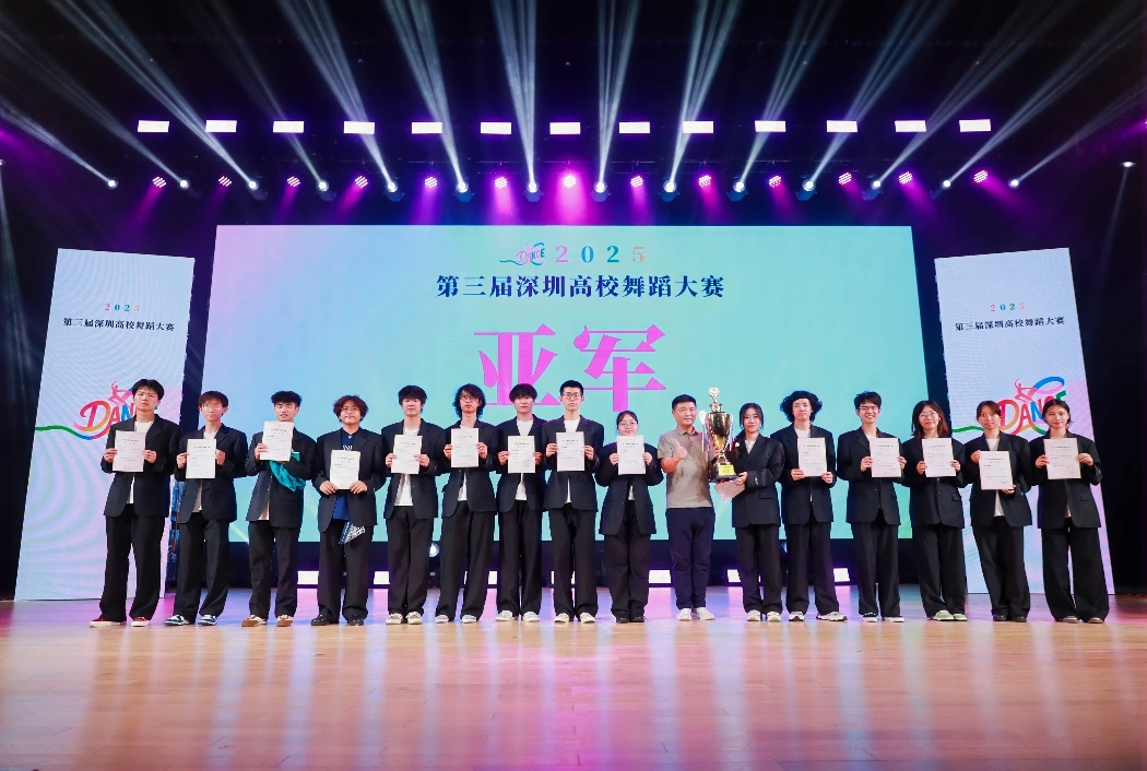 第三届深圳高校舞蹈大赛在北京大学深圳研究生院国际会议中心隆重举办。本次舞蹈比赛不分组别,深圳各大高校舞蹈队聚集于此,同台竞技,共同角逐桂冠。体育中心赖莎老师率南科大校舞蹈队参赛,夺得亚军荣誉。
