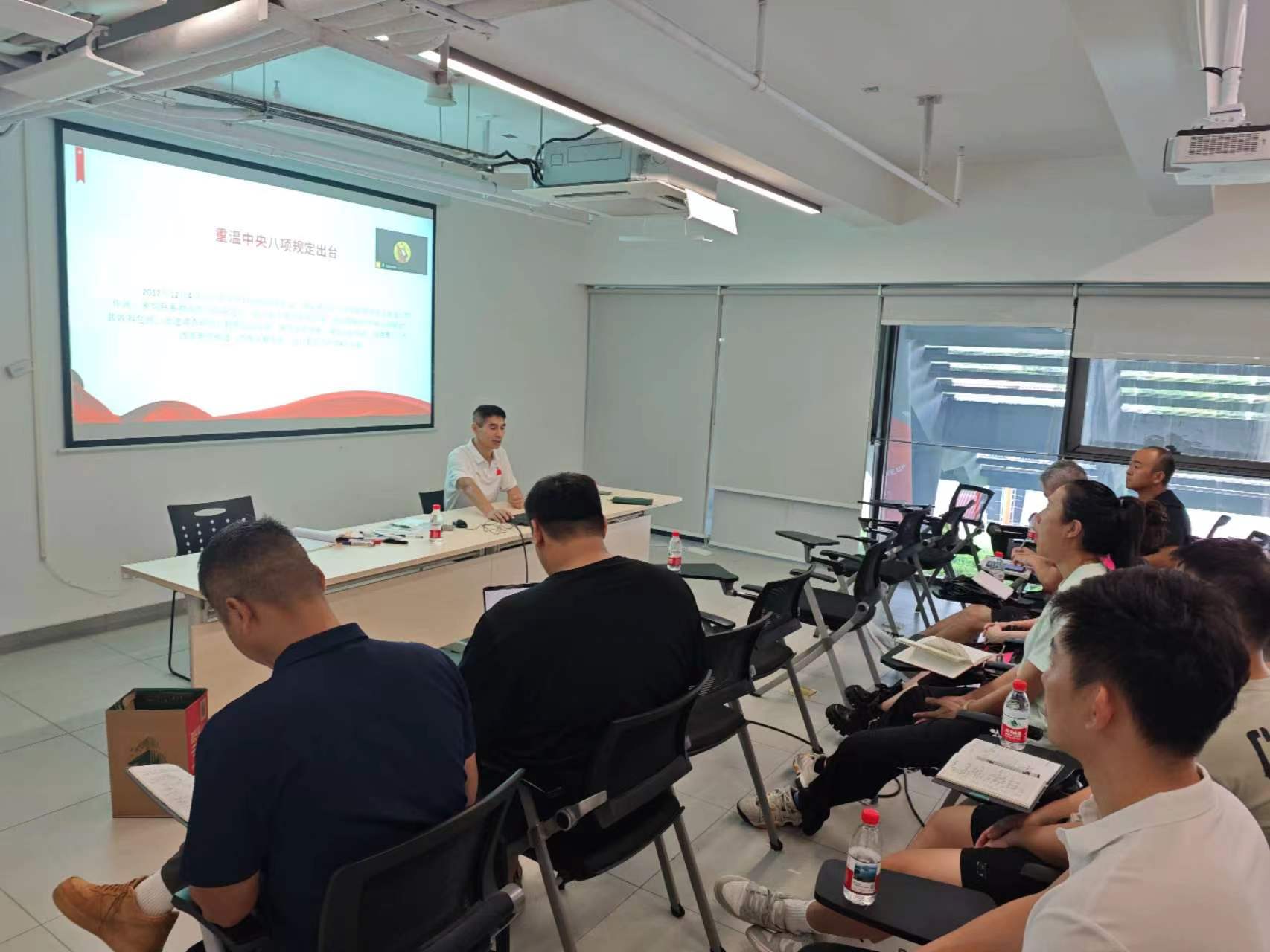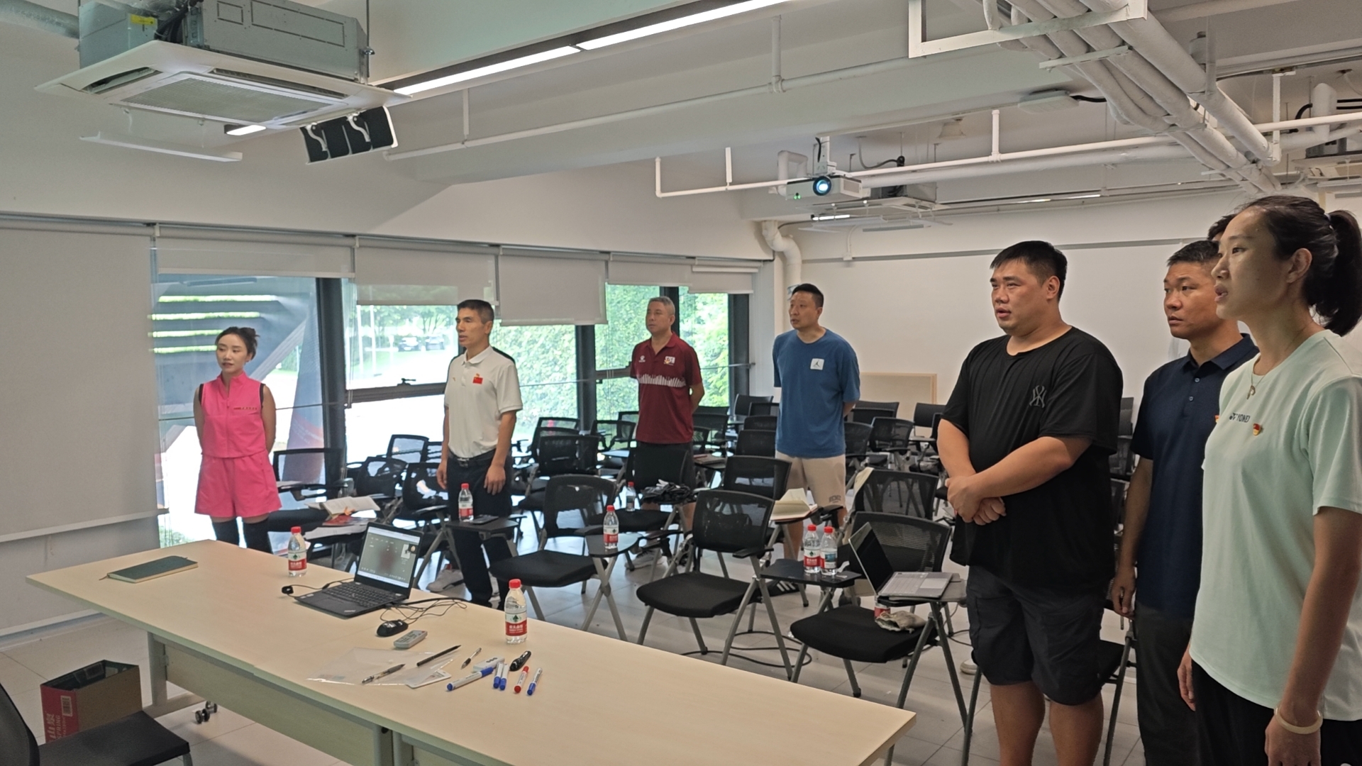 为庆祝中国共产党成立104周年,进一步强化党员纪律意识和作风建设,2025年7月1日,体育中心党支部在润杨体育馆组织全体党员开展了“庆党节 强作风”主题党日活动。活动由党支部书记董伦红同志主持,全体党员参加。