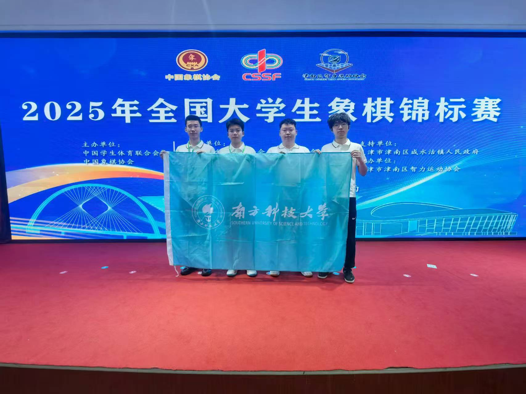 近日,2025 年全国大学生象棋锦标赛在天津圆满落幕。南方科技大学象棋队代表学校出征,经过 激烈角逐,最终斩获团体第十名,队中三名队员凭借出色发挥达到国家二级运动员技术等级标准。?
