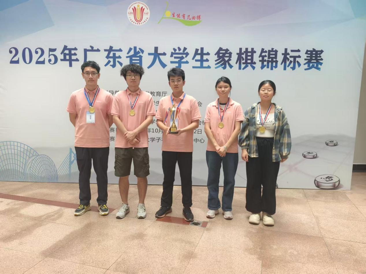 近日,2025 年广东省大学生象棋锦标赛在珠海圆满收官。作为我校中国象棋代表队时隔四年再度亮相的省级最高级别赛事,队伍不负期待、奋勇拼搏,最终凭借队员间的默契协作斩获团体第三名(季军),同时队员张翰元、卢君妍分别拿下男子组、女子组个人赛第四名,创下我校中国象棋队重返大学生省级联赛后的最佳成绩,为学校体育事业再添光彩。