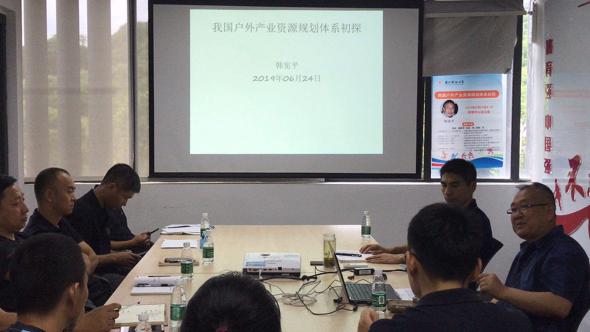 2019年6月24日9:30,中国登山协会国家步道系统专家韩宪平受邀莅临我校体育中心开展讲座,讲座由体育中心主任董伦红教授主持,体育中心相关教师列席参加。