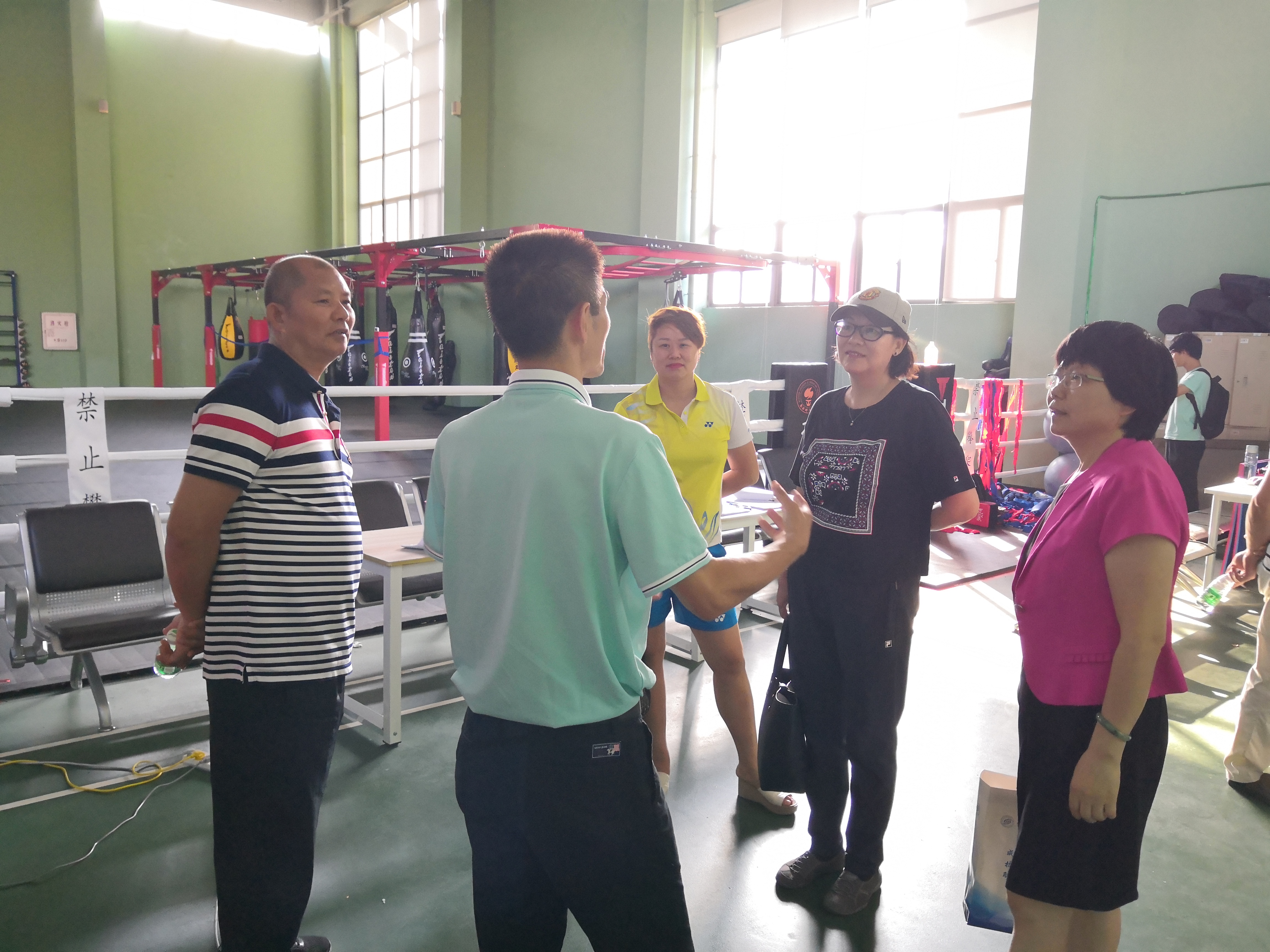 座谈会结束后,在体育中心主任董伦红教授和相关老师的陪同下,考察组人员还参观了学校沙盘和润杨体育馆的国际体能中心、搏击馆、野战训练场等教学训练场地。