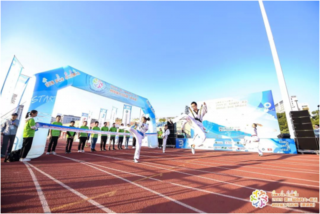 开跑前,十三名来自南科大跆拳道社的学生作开场表演。