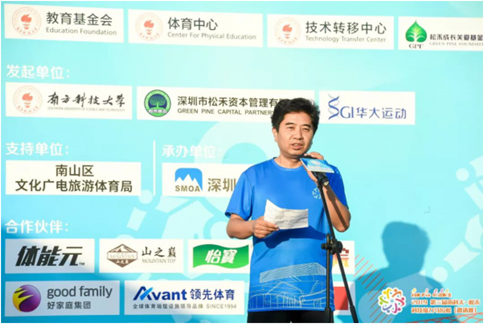 厉伟在致辞中表示,松禾资本非常荣幸能在南科大校园里面,与南科大一同举办赛事,为科技创新奔跑,为健康运动加油,并预祝各位参赛者跑得开心,在美丽的南科大校园收获运动的快乐和创新的活力。