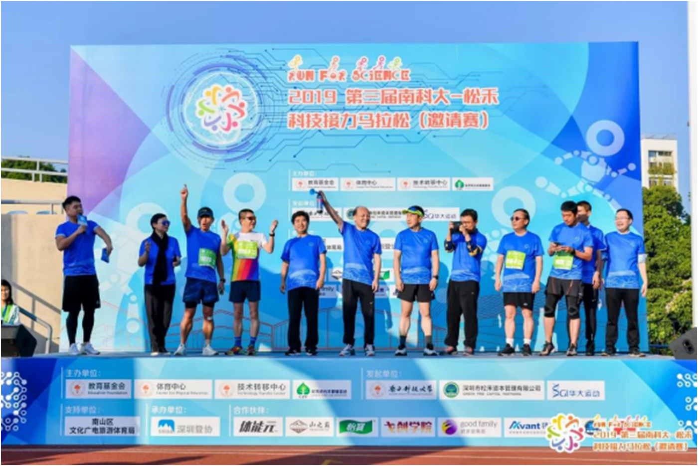 “让科技插上运动的翅膀!”“跑出青春,跑出风采!”12月1日早上8点,2019第三届南科大-松禾“科技接力”马拉松在南方科技大学松禾体育场举行,在南方科技大学校长陈十一鸣笛后,赛事正式拉开序幕,来自科技、创投、体育等多个领域的精英人才以及南科大师生等近千名运动爱好者活力开跑。