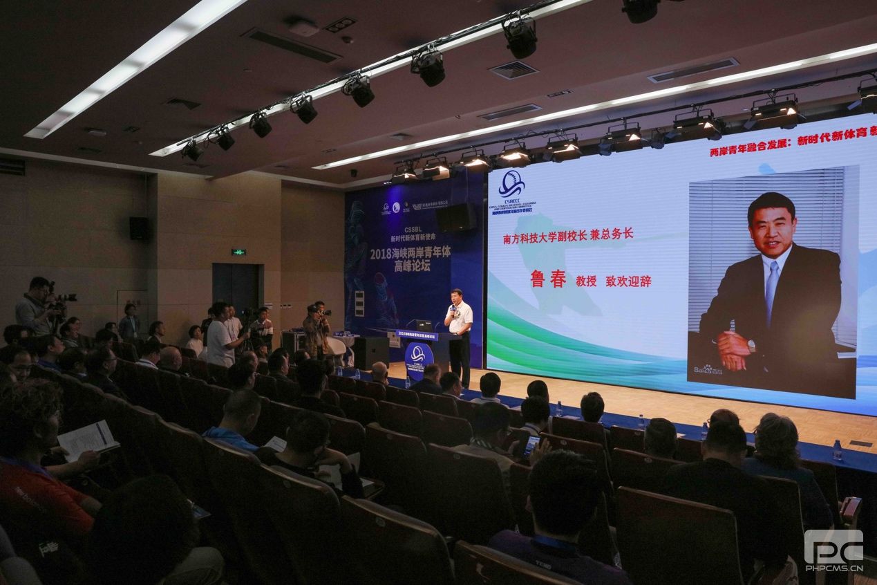 当天下午,2018海峡两岸青年体育高峰论坛在南科大一科报告厅举行,论坛以“两岸青年融合发展:新时代.新体育.新使命”为主题,邀请两岸高校、教育界、体育界的专家学者等,采用主题报告、圆桌论坛的方式,分享两岸体育学术研究成果,探讨深化两岸体育研究领域的交流与合作。南科大副校长鲁春在论坛上致辞,他表示,体育赛事作为体育交流的一个重要载体,已成为两岸民众交流沟通的重要桥梁和纽带。研讨会的召开将为两岸体育界展示体育前沿研究成果、探讨两岸体育未来发展方向提供良好的交流平台。