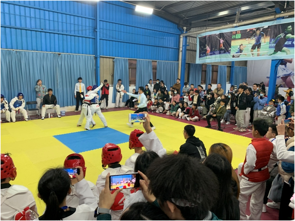 ? 2020年12月19日,广东省青少年跆拳道联赛暨第一届大学生交流大赛在福永举办,南方科技大学跆拳道社联合搏击社代表学校参加了本次比赛。