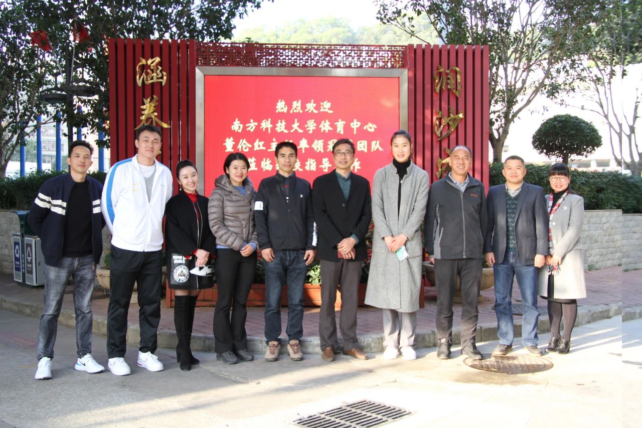 1月18日下午,体育中心董伦红主任率领奥运冠军王鑫、世界冠军孙瑜、亚洲锦标赛冠军梁锡元及全国冠军赵洋、卢阳、赖莎等冠军师资团队一行九人,走访和调研沙湾中学,受到沙湾中学黄少波校长、陈岭副校长、梁洪伟副校长等行政领导热情接待。