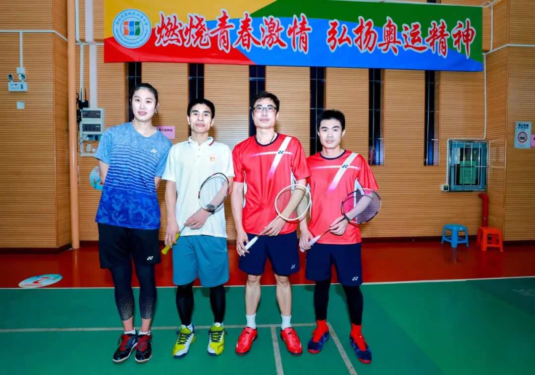 座谈会后,董主任和冠军们受邀到沙湾中学明礼堂羽毛球馆,与师生亲密互动,同场竞技,全场氛围轰动热烈!