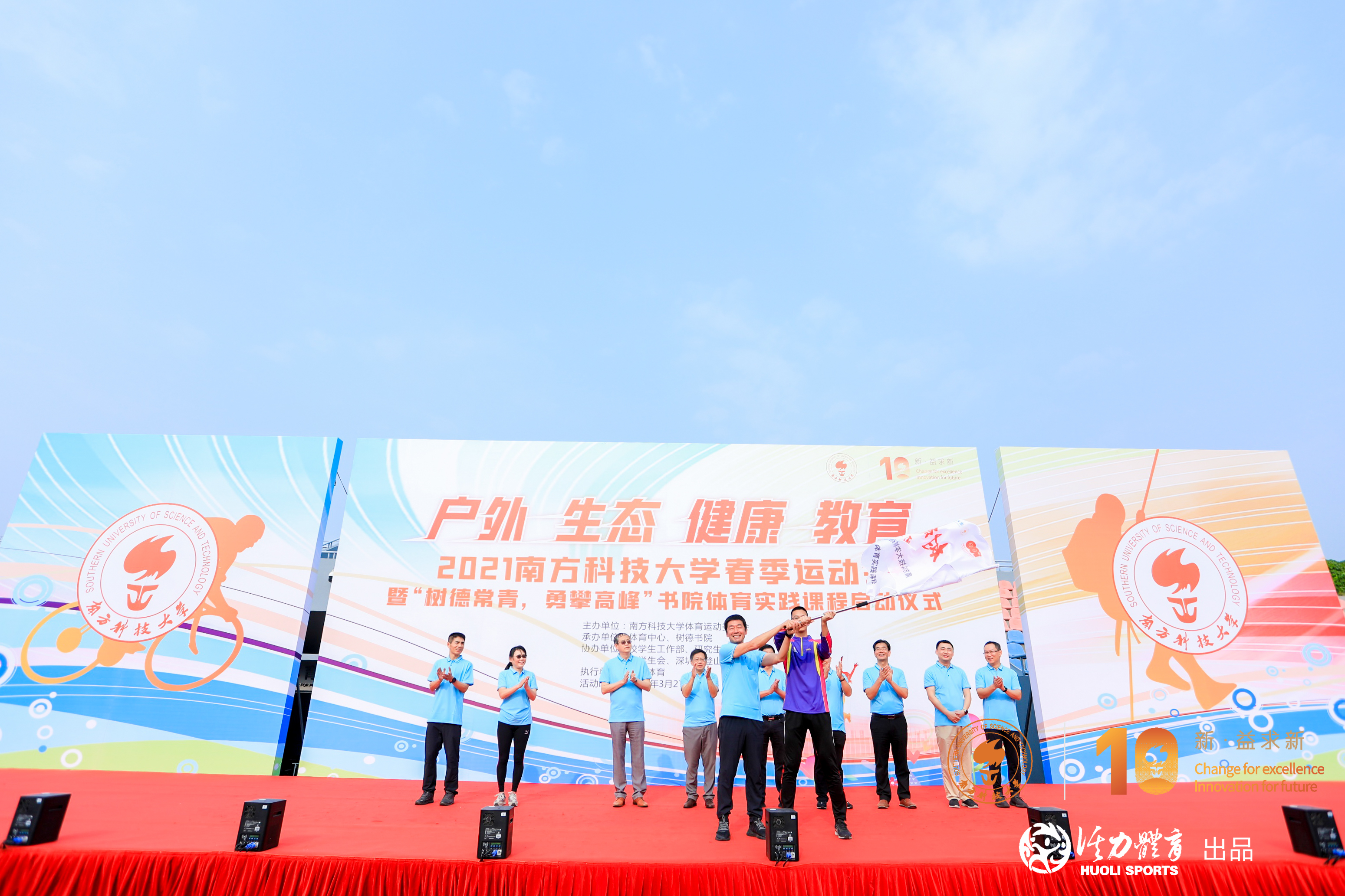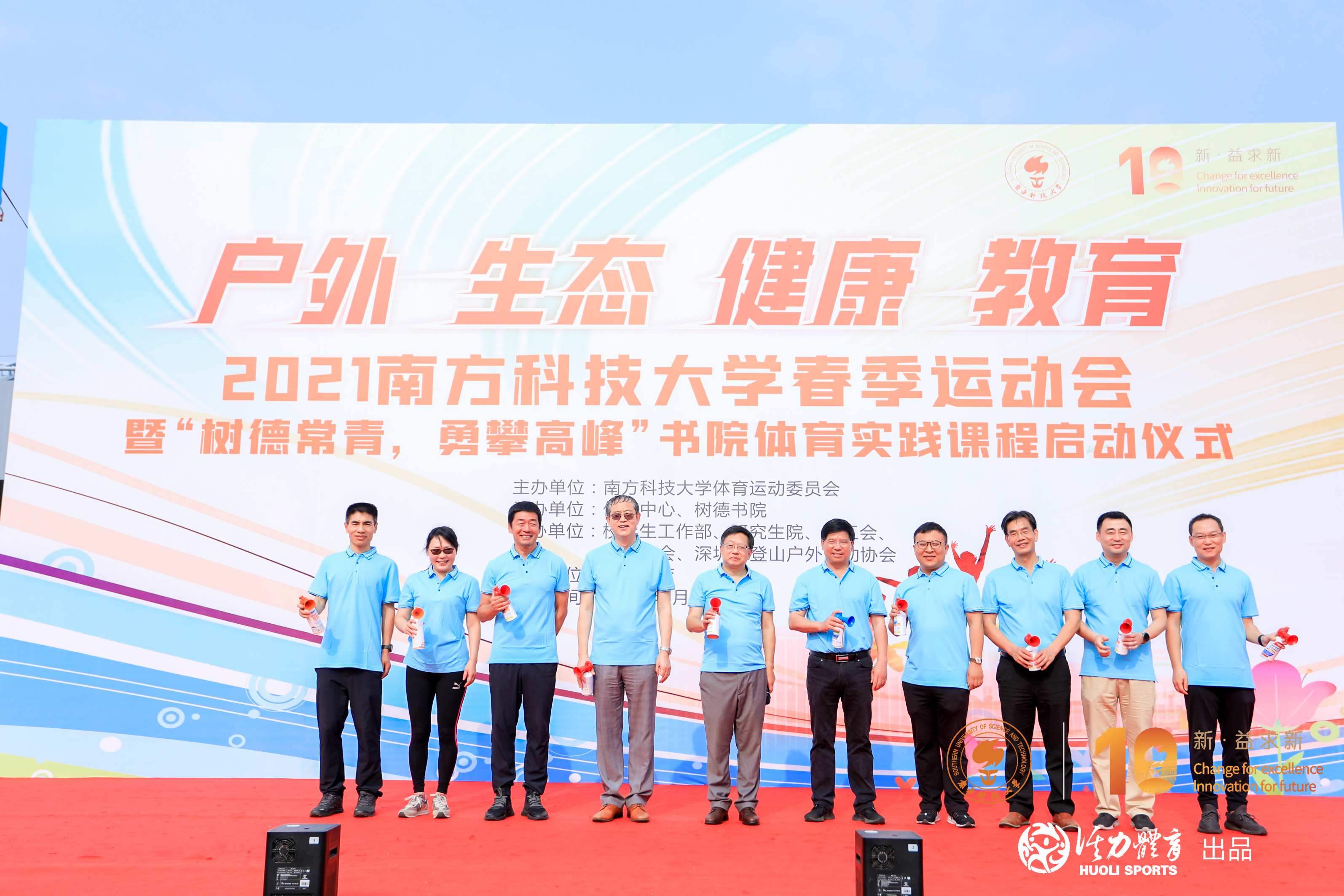 我校副校长兼教务长张东晓,南方科技大学校长办公会成员、国际合作部部长郑春苗,南方科技大学校长办公会成员、医学院院长邢明照,南方科技大学党委常委、宣传与公共关系部部长张凌,深圳市登山户外运动协会会长,树德书院社会导师张梁,以及研究生院、树德书院、学生工作部、体育中心、校工会等部门领导共同出席了开幕式。