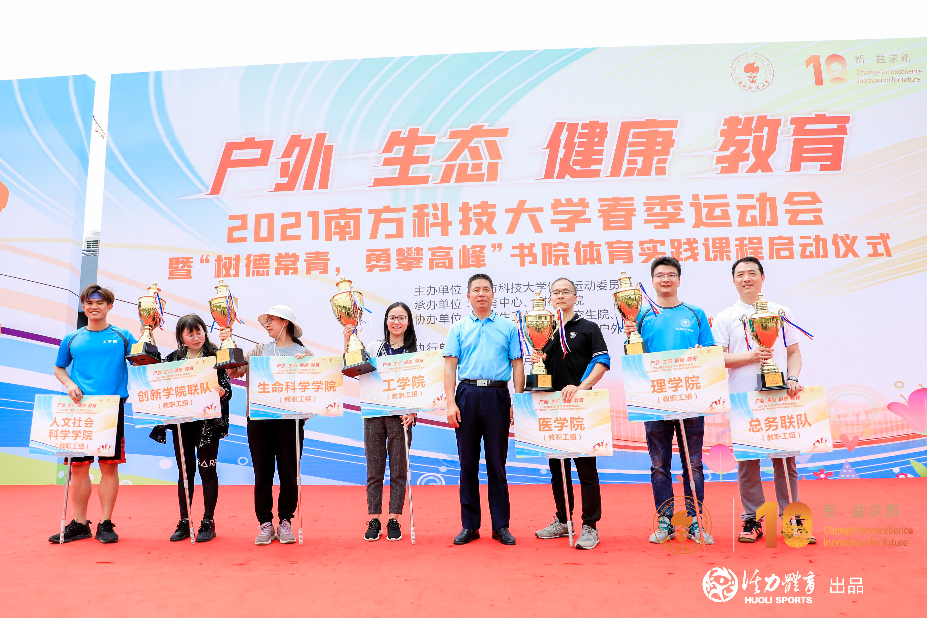经过紧张激烈、生动有趣的角逐,大家付出了智慧和汗水,也收获了友谊和快乐。最终致仁书院学生代表队、树礼书院学生代表队、树德书院学生代表队、致新书院学生代表队获得本科团体总分前四名;工学院学生代表队、理学院学生代表队、生医联队获得研究生团体总分前三名;工学院代表队、医学院代表队、理学院代表队、总务联队、生命科学学院代表队、创新学院联队+人文社会科学学院代表队获得教工组团体总分前六名。运动会裁判长在宣布成绩后为各获奖队伍进行了颁奖。