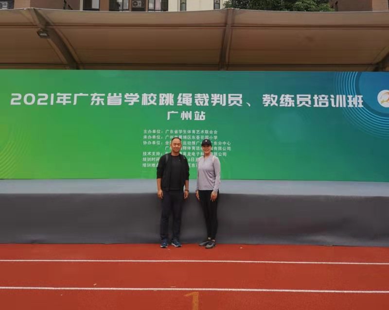 为提高校园跳绳教练员、裁判员业务水平,广东省体育艺术联合会于2021年4月16日-18日在广州市举办2021年广东省学校跳绳裁判员、教练员培训班(广州站)。此次培训由广东省学生体育艺术联合会主办,广州市黄埔区东荟花园小学承办,全国跳绳运动推广中心广东分中心、广州市腾翔体育活动策划有限公司协办。来自全省360余名学员参与了本次培训。我校体育中心赵一品老师、白波老师受邀参与此次培训班的学习。