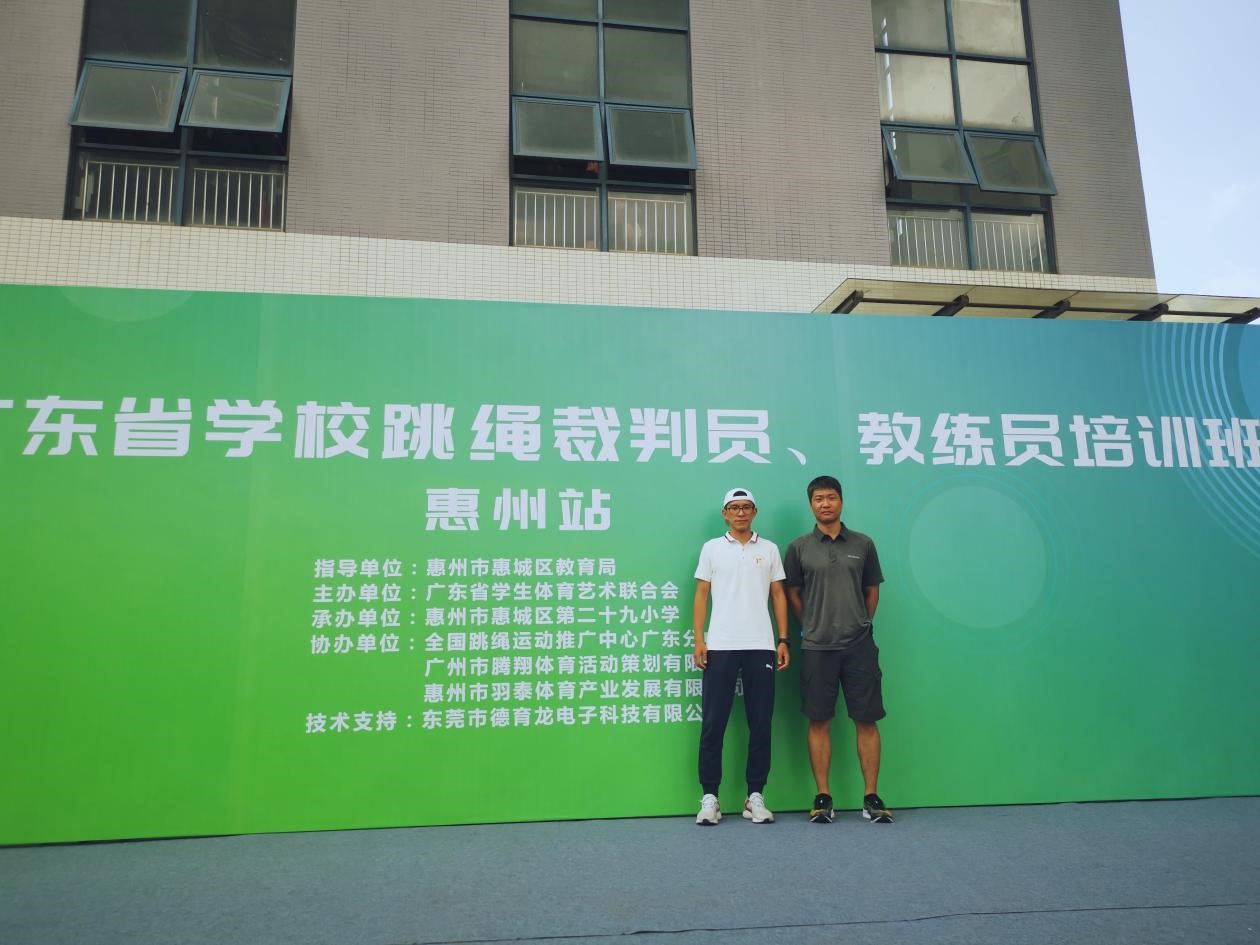 由广东省学生体育艺术联合会举办的2021年广东省学校跳绳裁判员、教练员培训班(惠州站)在惠州第二十九小学隆重举行,为进一步强化学校体育教师对跳绳比赛动作要领的理解及提高组织训练水平,满足体育教学内容多样化需求,我校体育中心赵飞老师、梁锡元老师赴惠州参加培训班学习。经过5月14-16日两天半的理论加实践考核,赵飞、梁锡元老师圆满完成本次培训班的学习,并以优秀的成绩获得裁判员、教练员资质。为我校体育课程建设提供有力的保障。