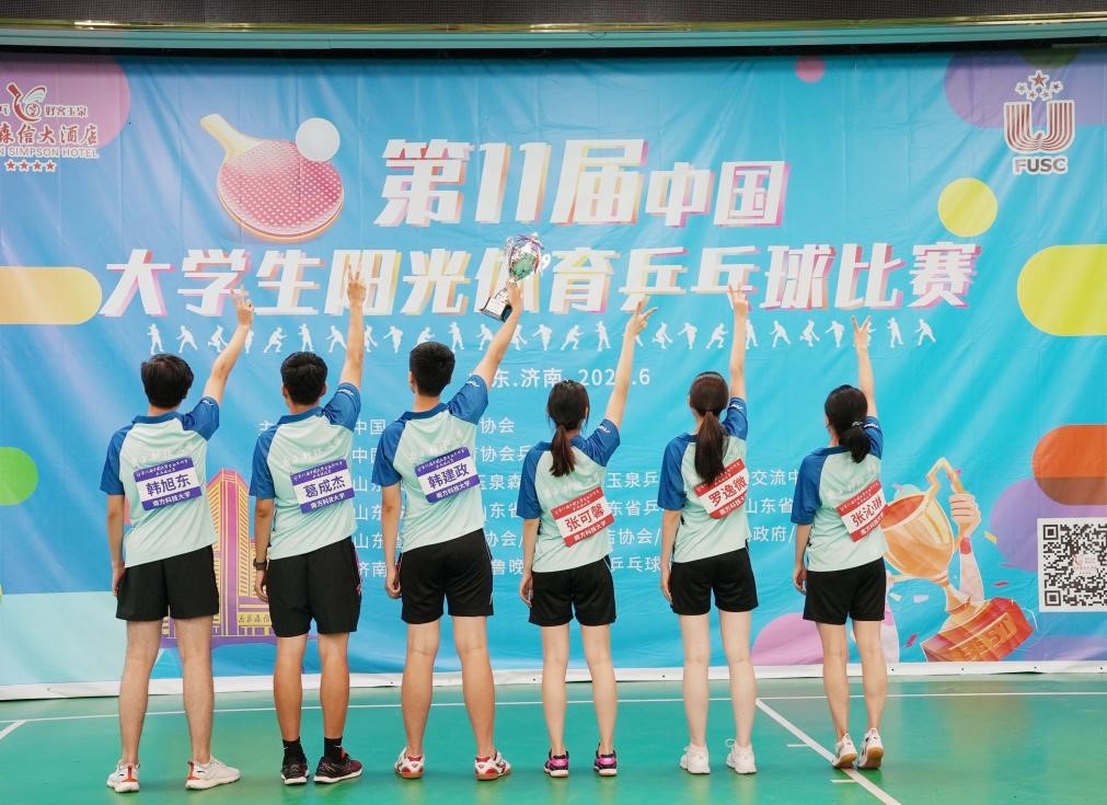 2021年6月5至6日,由中国大学生体育协会主办、中国大学生体育协会乒乓球分会执行主办、济南玉泉森信大酒店有限公司承办的“第11届中国大学生阳光体育乒乓球比赛"在山东济南举行,我校由体育中心董伦红主任担任领队,何紫琳老师担任教练,派出六名学生参赛并取得佳绩。