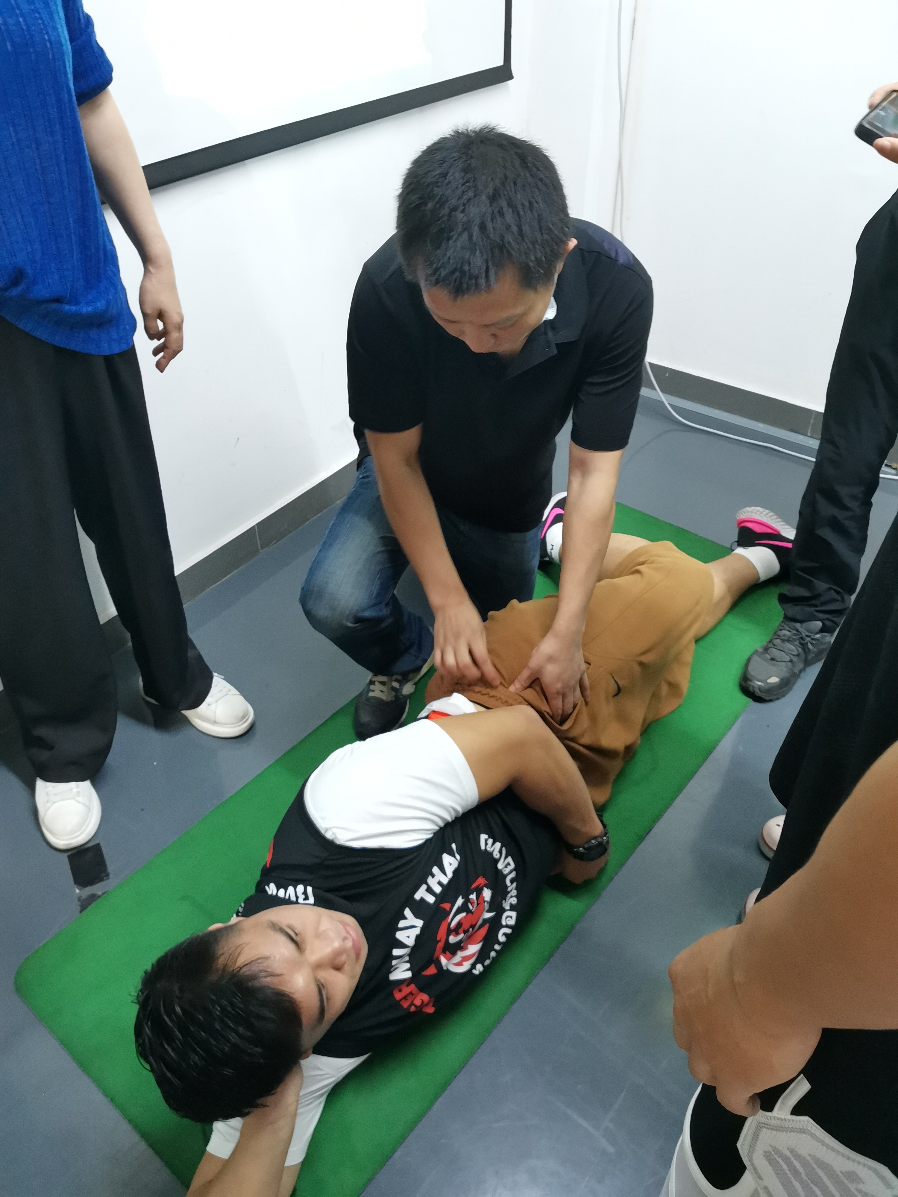 随后,余医生进行了课程答疑和现场体验环节,针对常见的腰、膝、肩、肘等关节的疼痛、僵硬、活动受限等和与会教师进行了现场评估、诊断和治疗。