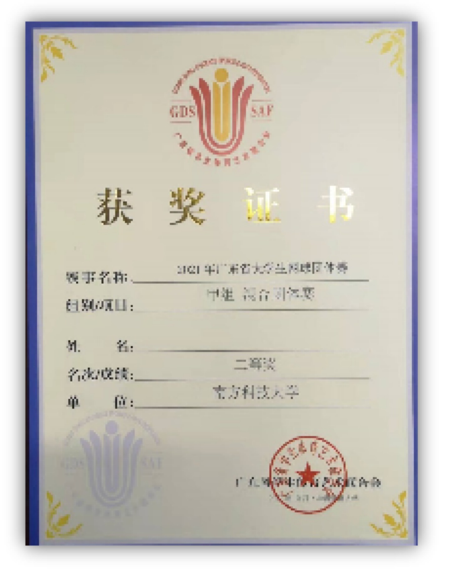 2021年12月3日,南方科技大学网球队出征广东省大学生网球团体赛,比赛总共为期三天。南方科技大学在这次比赛的对手是广东医科大学以及五邑大学,经过队员们的努力拼搏,南方科技大学网球队最终获得了2021年广东省大学生网球团体赛甲组混合团体赛的二等奖。每位上场的选手都拼尽了全力,未上场的选手也在场下虚心的学习其他院校的球员的优势,并有激情的为本校的选手加油和鼓励。本校的陈诗源同学,在男单和混双的总比分都落后的时候,依然用尽全力的进行了女单的比赛(在已经打了两场比赛的情况下),展现了自己的水平,以一场精彩的比赛展现了网球运动的魅力。虽然最终女单的比分以平局收官,但是这体现了运动员的职业拼搏精神,以及对于学校荣誉的一致向往和追求。