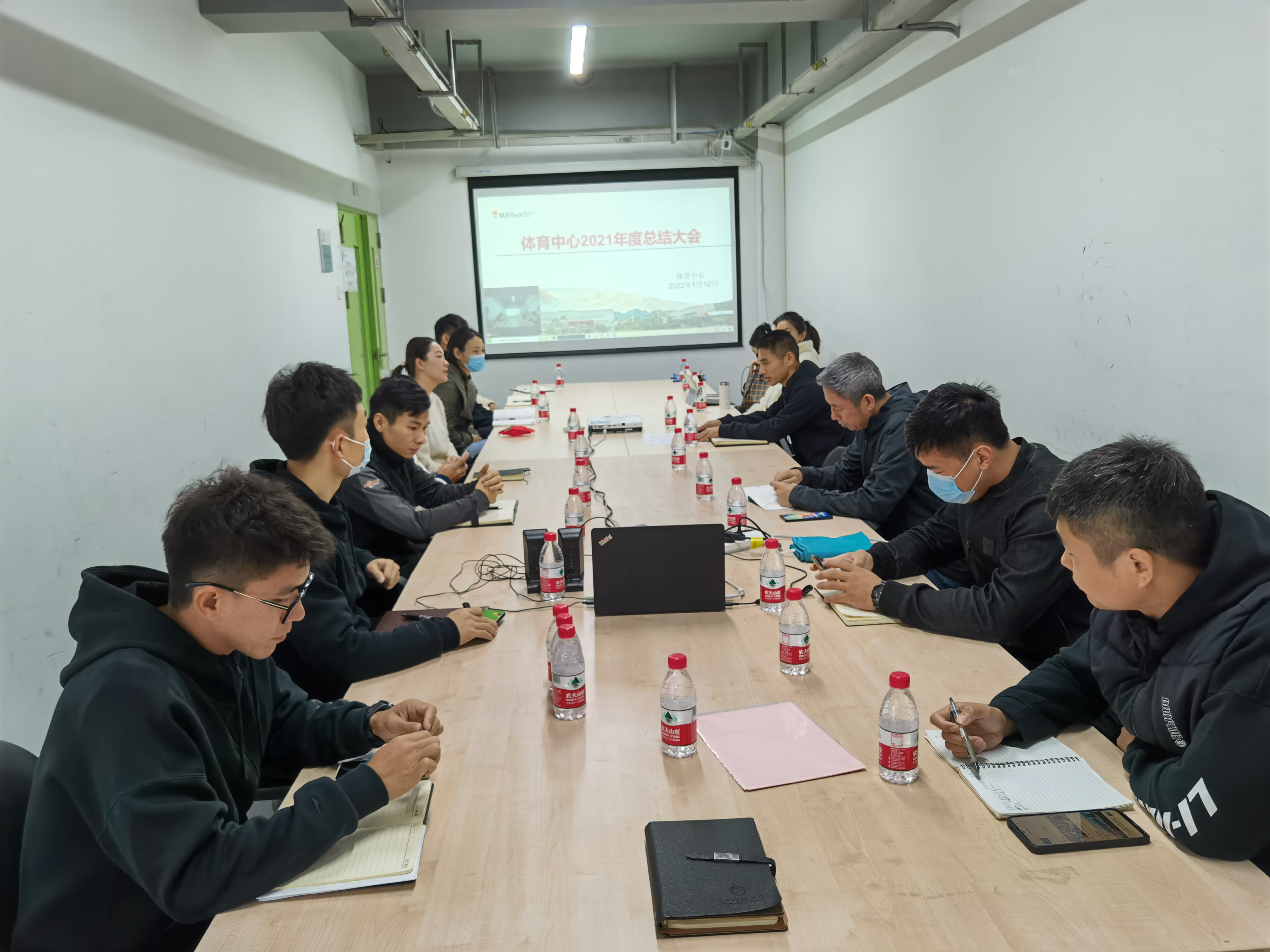2022年1月12日,体育中心主任董伦红在中心会议室主持召开2021年度总结大会,中心全体教师参加了会议。