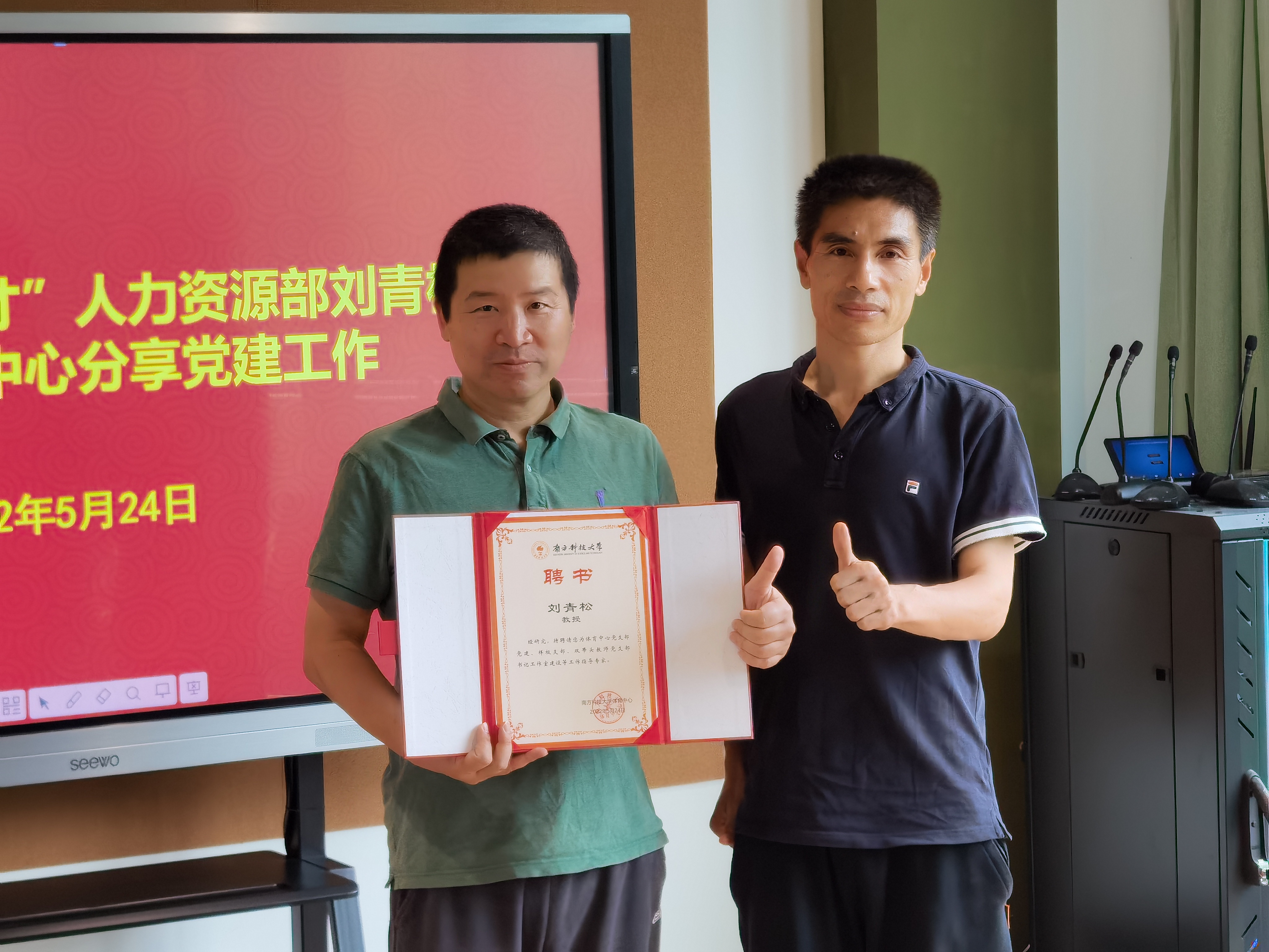 会后,体育中心党支部书记董伦红为刘青松教授颁发了“体育中心党支部党建、样板支部、双带头人教师党支部书记工作室建设等工作指导专家”聘书。
