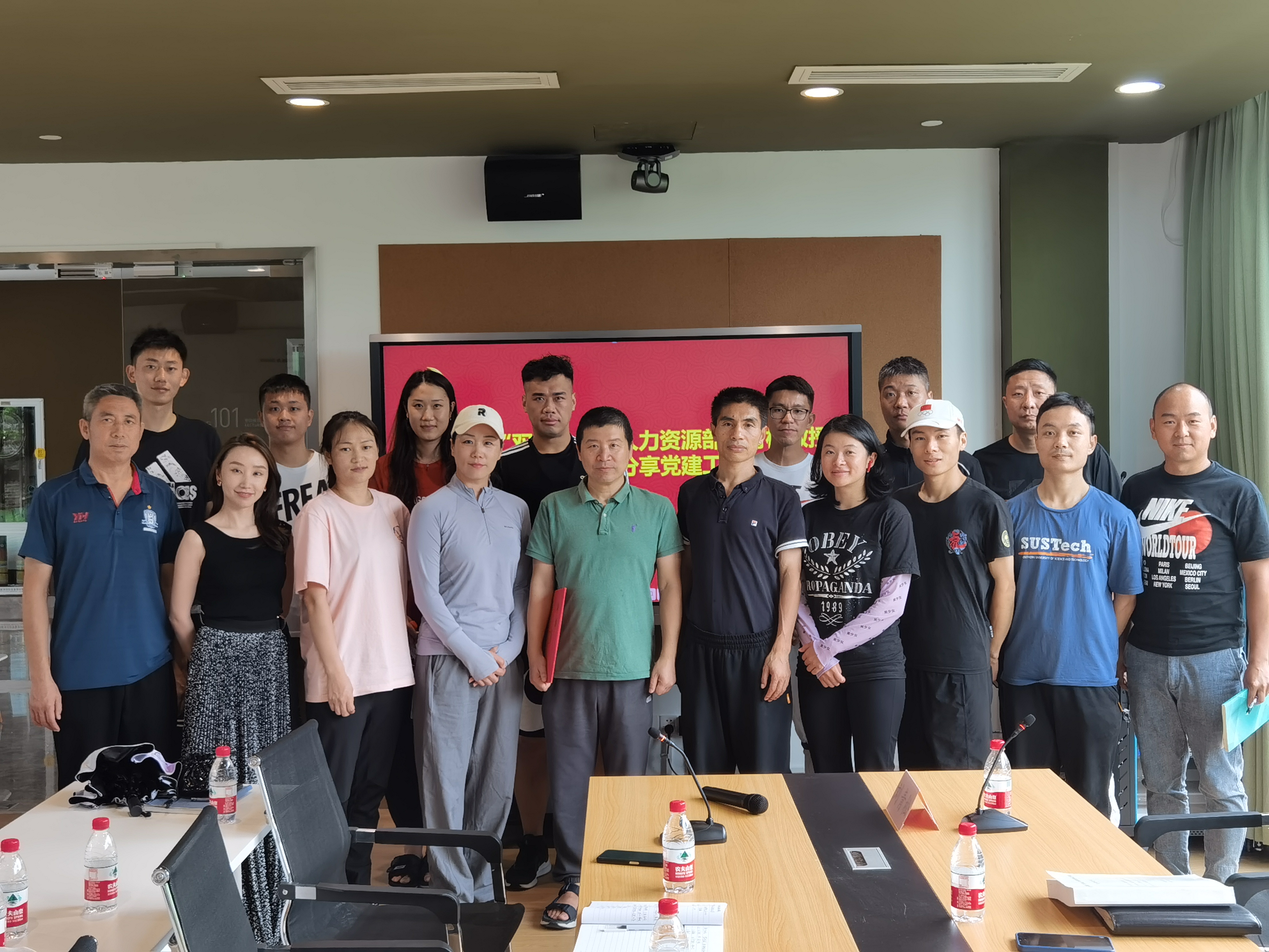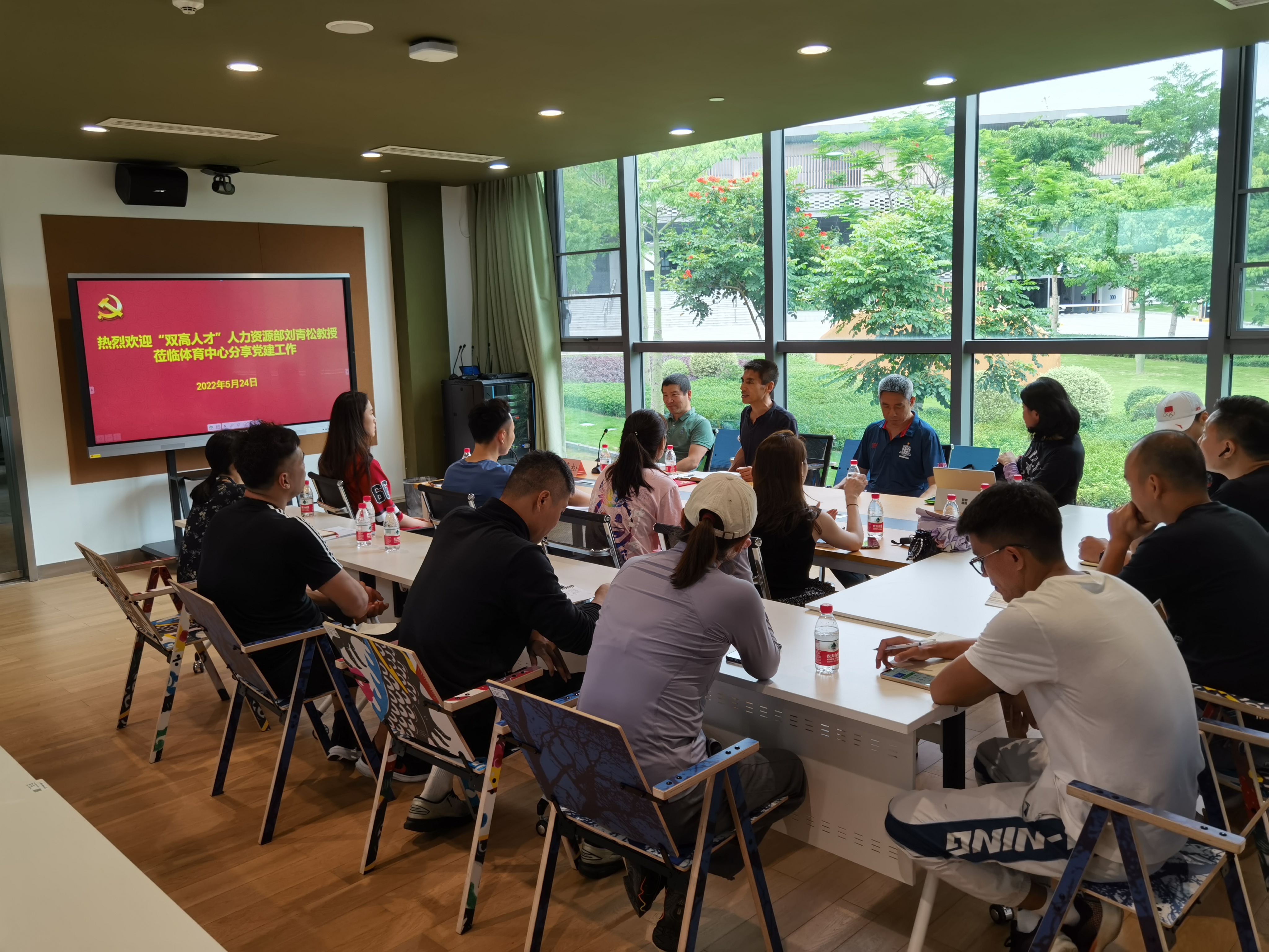 为拓展体育中心积极探索自身业务与党建融合发展的路径,学习我校优秀基层党组织党建工作经验,2022年5月24日下午,体育中心邀请“全省党建工作样板支部”和全国第二批高校“双带头人”教师党支部书记工作室——人力资源部“双高人才”(全国模范教师、教育部特聘教授,国家基金委杰青)刘青松教授分享和指导支部党建工作。本次活动采取座谈交流、现场指导的形式,座谈会由体育中心党支部书记董伦红主持,中心全体教师参加了会议。