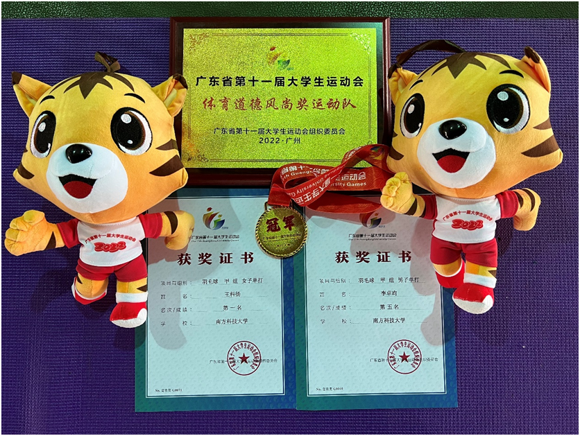近日,2022年广东省第十一届大学生运动会羽毛球比赛在华南理工大学举行。南方科技大学代表队成员、2021级硕士研究生王科扬获女单冠军,2018级本科生李卓昀获男单第五名,实现南科大学子在大运会赛事中新的突破。