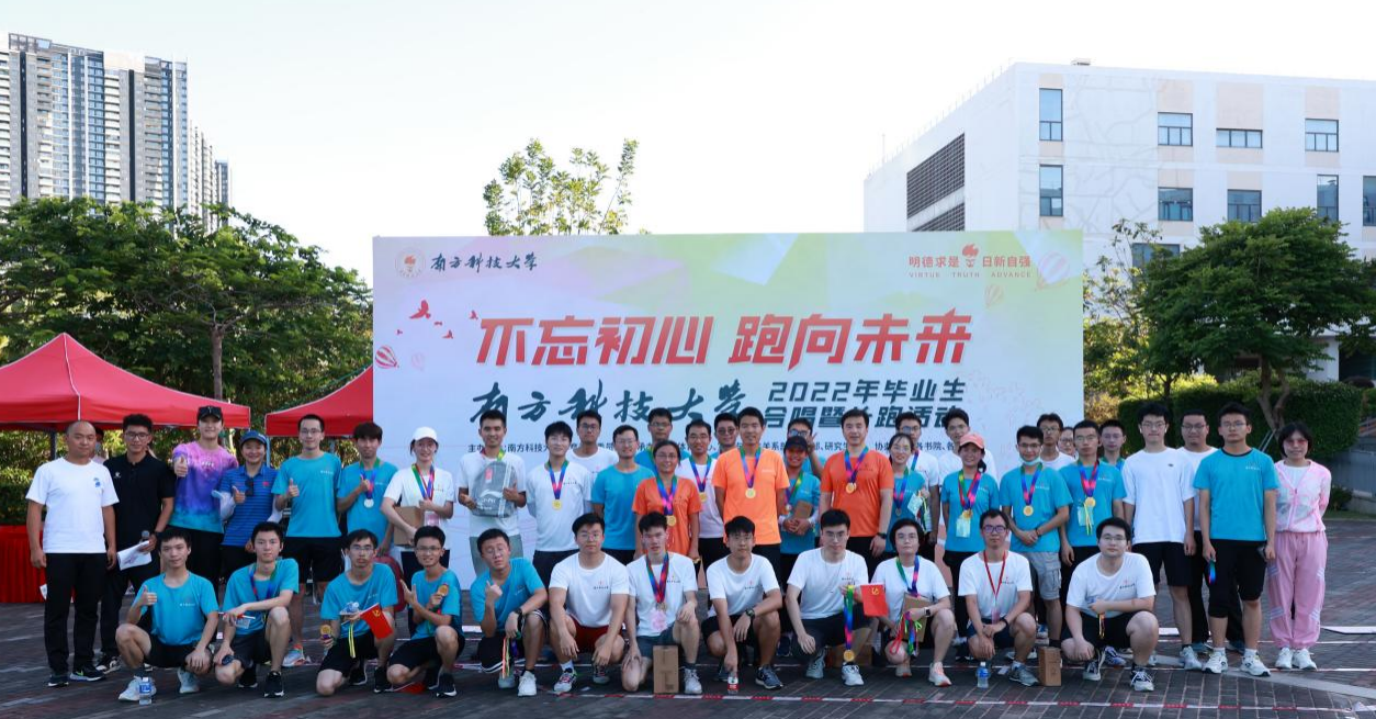 2022年6月24日,由南方科技大学体育运动委员会主办,体育中心、宣传与公共关系部、教工部、学工部、研究生院承办的“不忘初心 跑向未来”南方科技大学2022年毕业生合唱暨长跑活动成功举办,本次活动共有来至各本科书院和研究生院的毕业生、非毕业生、书院导师、研究生院导师近200人参与。出席活动的领导嘉宾有教学工作部余锡平部长,树仁书院黄立民院长,力学与航空航天工程系副主任、树礼书院学术副院长洪伟教授,体育中心奥运冠军王鑫副教授、世界冠军孙瑜副教授。余锡平部长在活动中致欢送词,表达对毕业生寄予厚望,不忘初心,传承南科大精神。同时余锡平部长与王鑫老师、孙瑜老师携手为本次活动起跑发令并为获奖师生颁奖。洪伟教授、黄立民院长与学生共同参与奔跑。