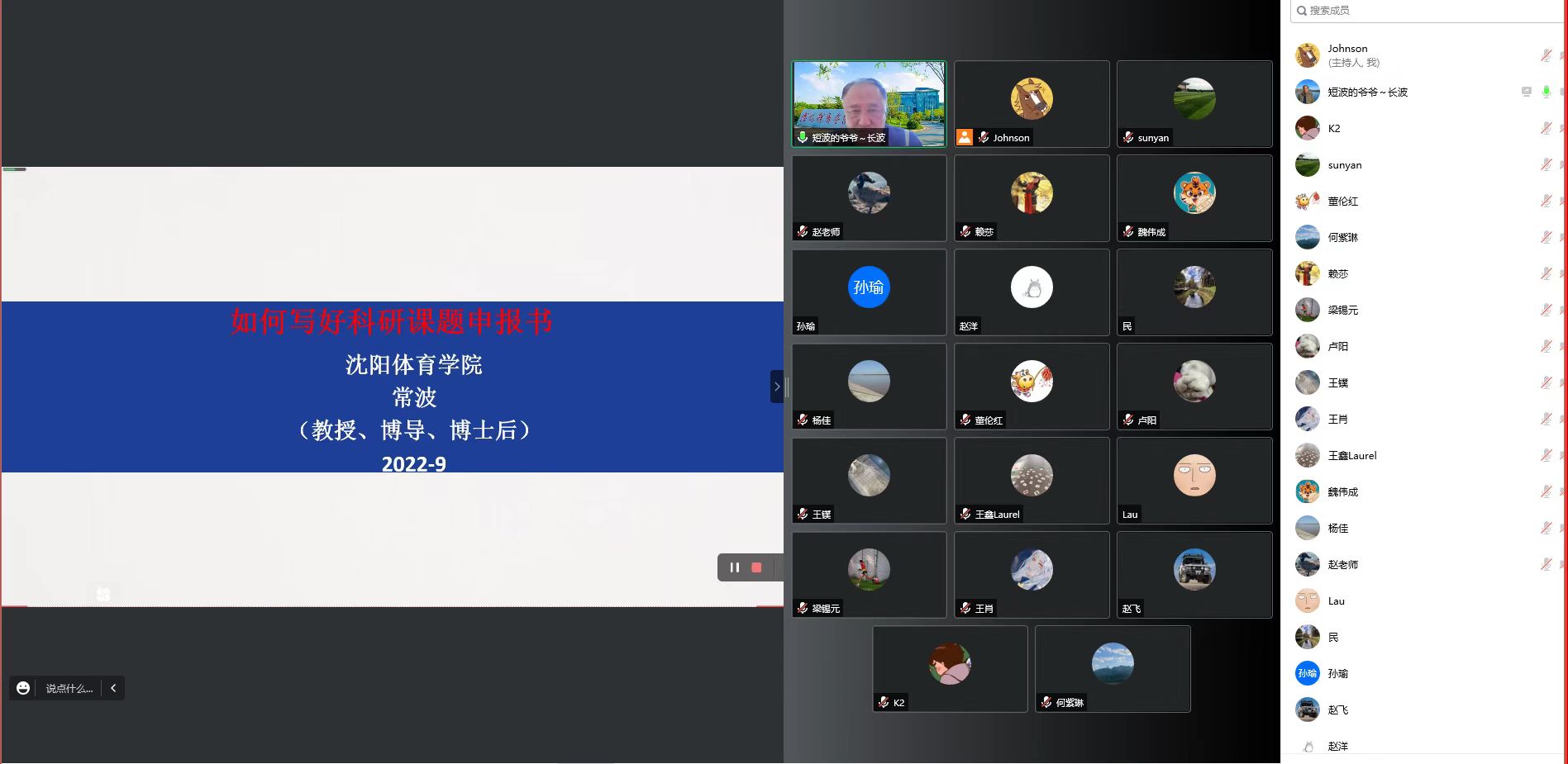 为更好的提高体育中心师资学术研究能力和科研课题申报水平,9月2日,应体育中心邀请,沈阳体育学院学报主编常波教授通过腾讯会议线上直播的方式,为体育中心全体老师作主题为:《如何写好科研课题申报书》专题讲座。