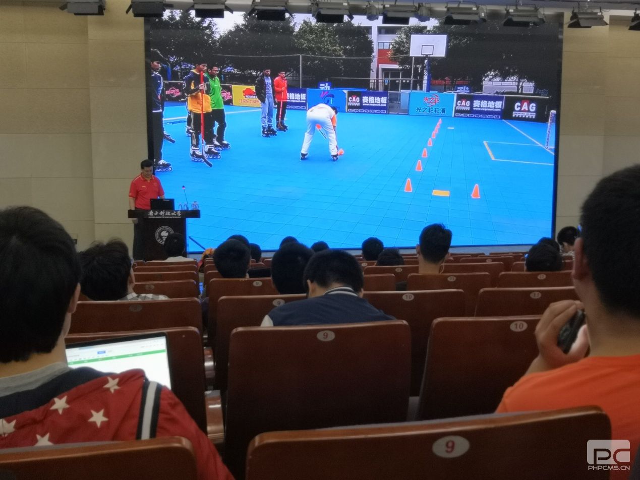 首先,张主席介绍了当今我国陆地冰球运动的发展状况和世界陆地冰球运动的发展趋势。随后,分析了真冰球和陆地冰球的特点和不同,并通过视频展示和教学,为全体师生展现一场酐畅淋漓的运动。最后,通过现场展示方式向同学们介绍了目前陆地冰球运动所使用的最先进器械和装备,并鼓励南方科技大学对陆地冰球感兴趣的学生能够为陆地冰球运动科技发展做出贡献。本次讲座引起了同学们的广泛兴趣,体育中心也将加快轮滑场地建设,为南科大体育轮滑课和轮滑社团的活动打好基础。