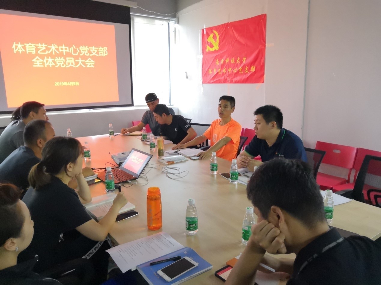 2019年4月9号下午,体育艺术中心党支部在体育中心会议室开展 “三会一课”支部活动,活动由体育艺术中心党支部书记董伦红主持,支部全体党员列席本次活动。
