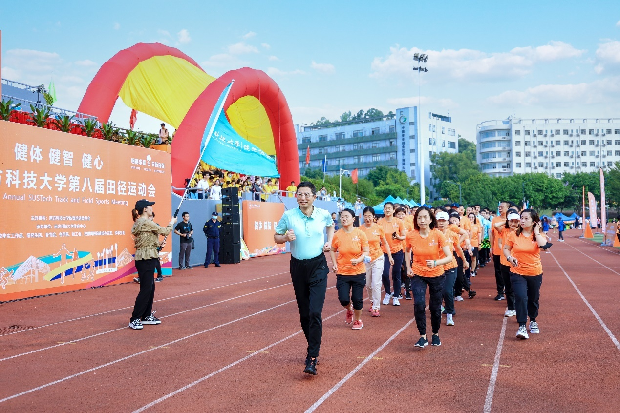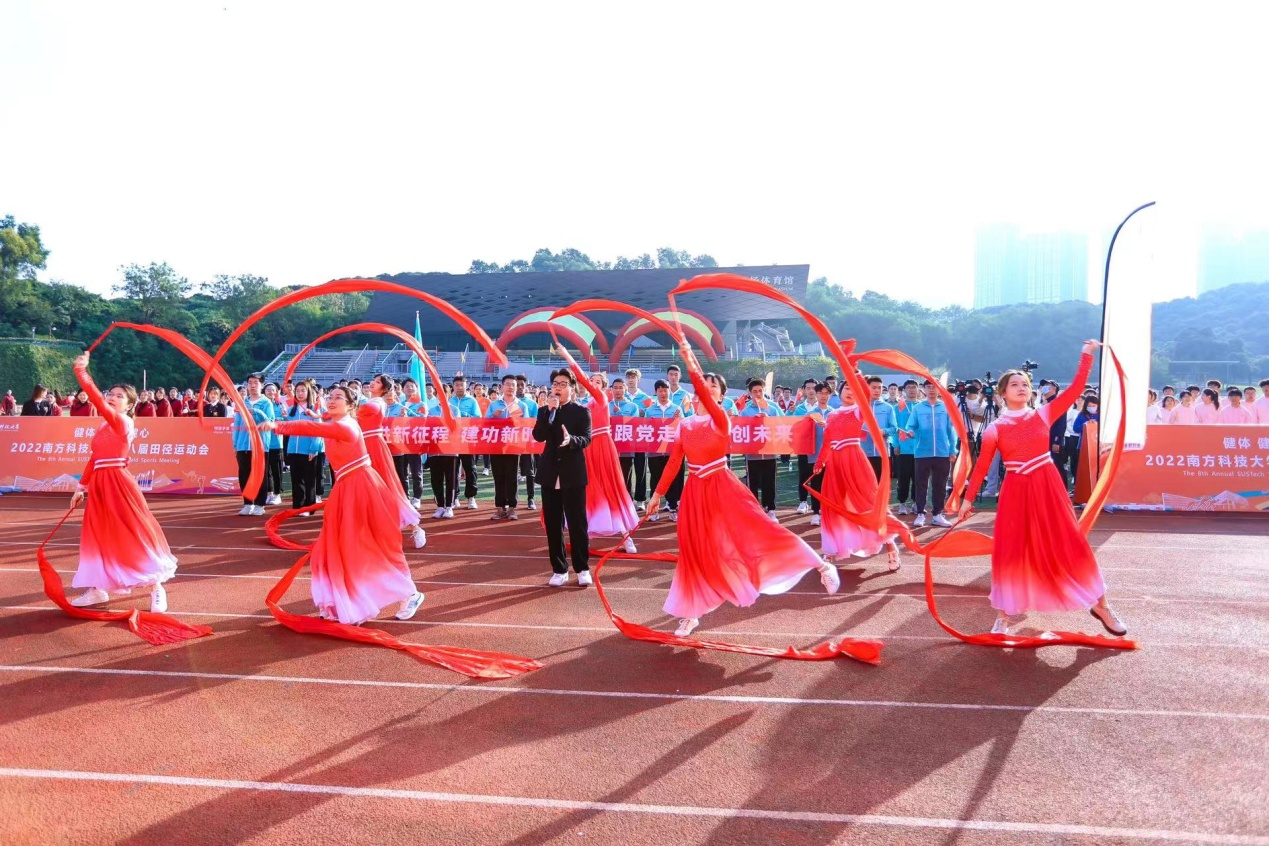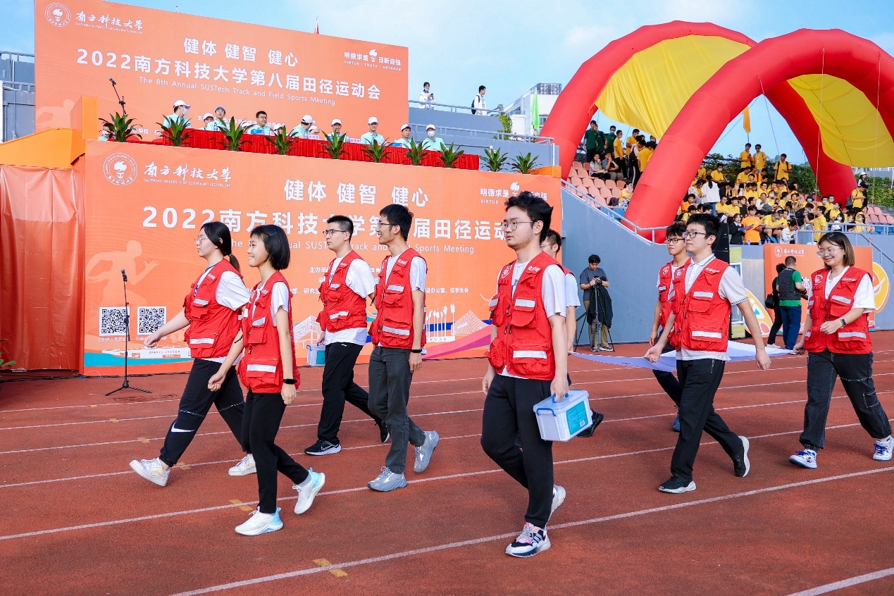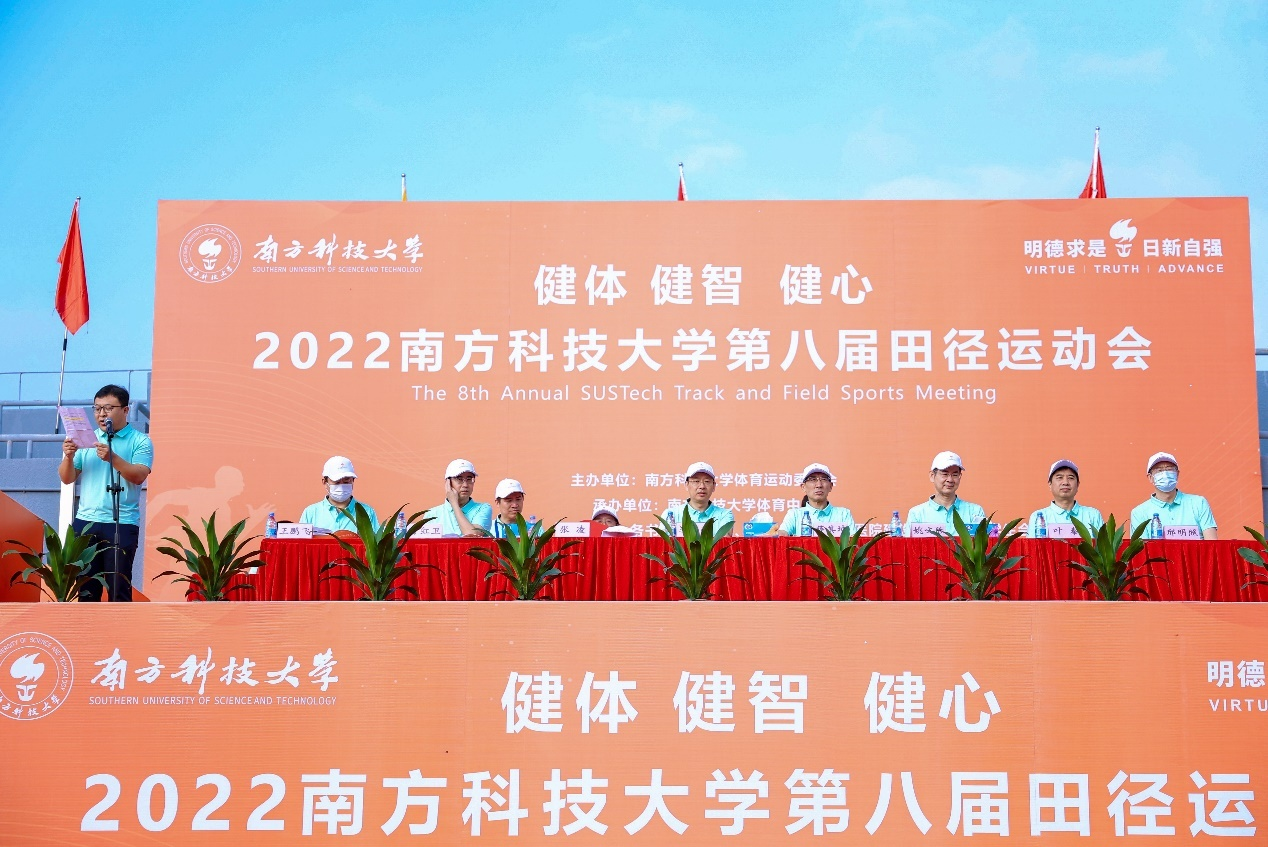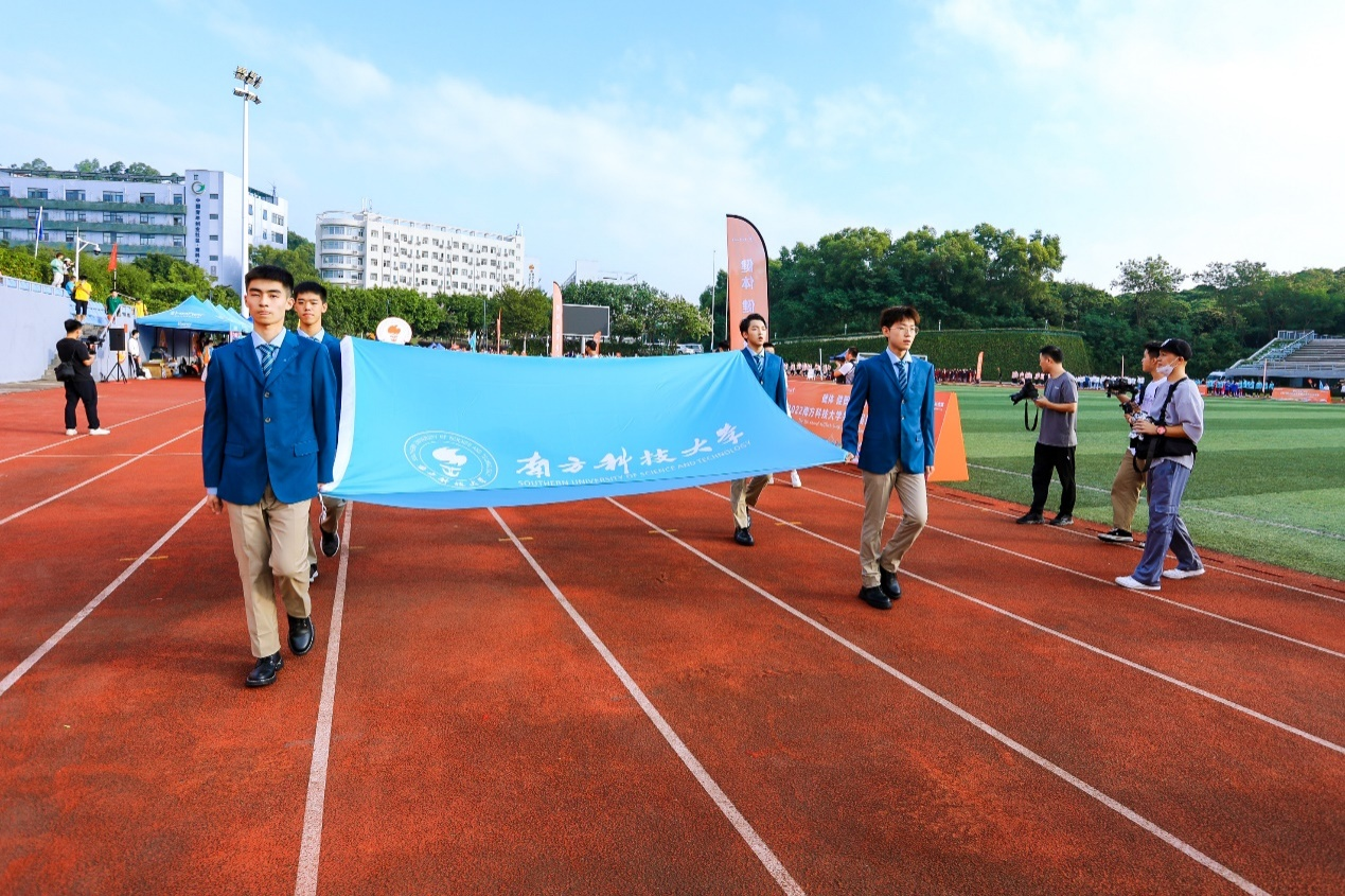 2022年11月11日,秋暮冬初,暖阳高照,南方科技大学第八届运动会以“健体 健智 健心”为主题,在南科大松禾体育场盛大开幕,来自各院系、部门、中心、书院、研究生院的运动员和师生代表参加了开幕式。本届运动会657名参赛选手组成了25支参赛队,分别按照本科组、研究生组、教工组进行角逐。