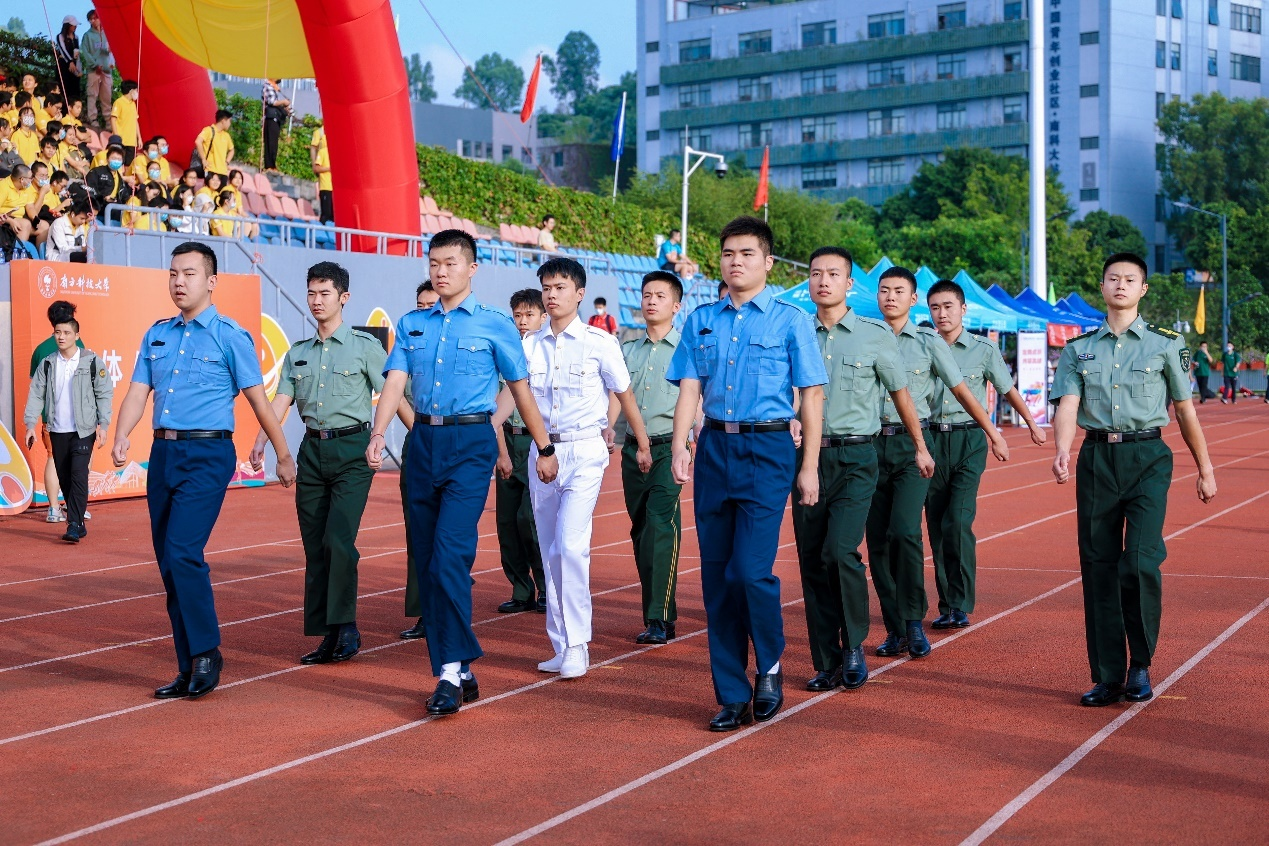 应急救援队紧随其后,运动会期间,应急救援队的队员们发挥了重要的作用,为受伤的同学及时予以救助。英姿飒爽的退伍兵方队由数名南方科技大学退伍学子组成,他们用飒爽英姿,勇往直前的状态,向全体师生展示了中华士兵的坚韧果敢。