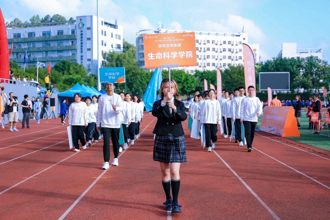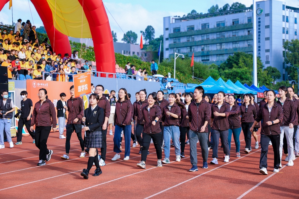 书院代表队的同学们积极向上,青春洋溢,在主席台前用各具特色的表演展示了热情、活力、运动、积极的靓丽形象。各研究生联队、各教职工代表队等方阵也依次亮相,排着整齐的队列,精神抖擞地走过主席台,赢得在场观众的的阵阵掌声和欢呼。