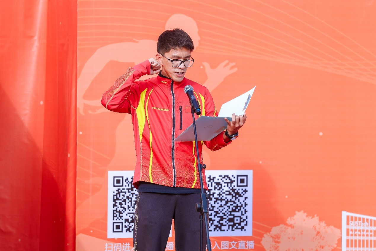 运动员代表罗贝尔同学宣誓,将以饱满的热情参加比赛,秉承友谊第一、比赛第二的信念,赛出风格,赛出水平。