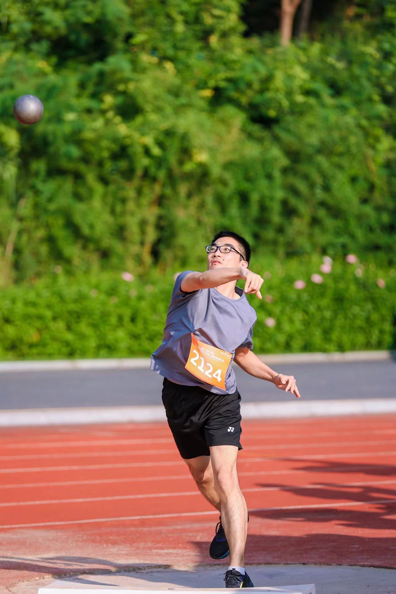 看台上的师生们为运动健儿们加油打气,整个松禾体育场洋溢着激烈紧张的竞技氛围。