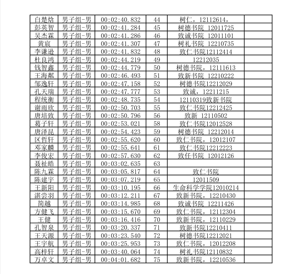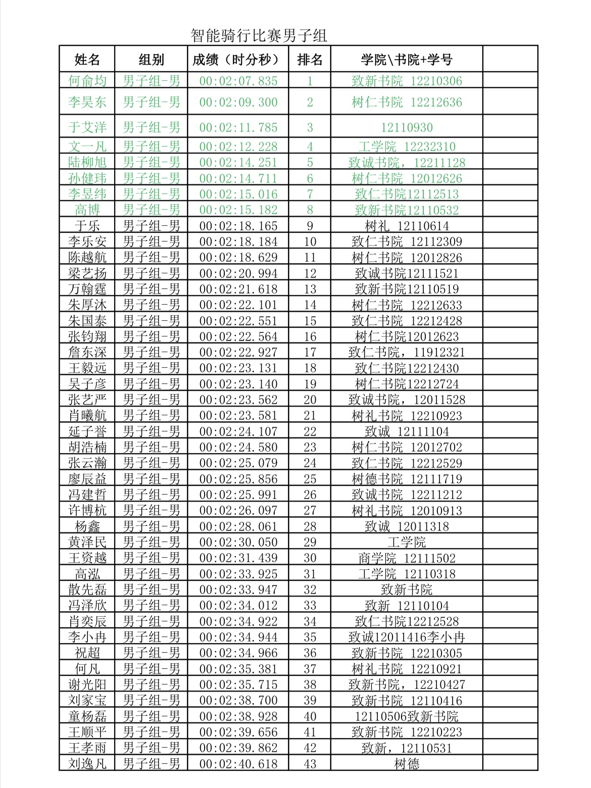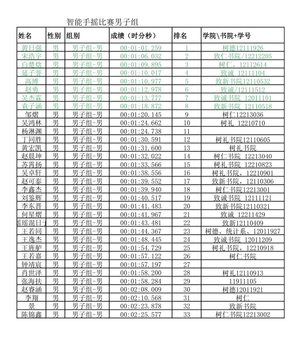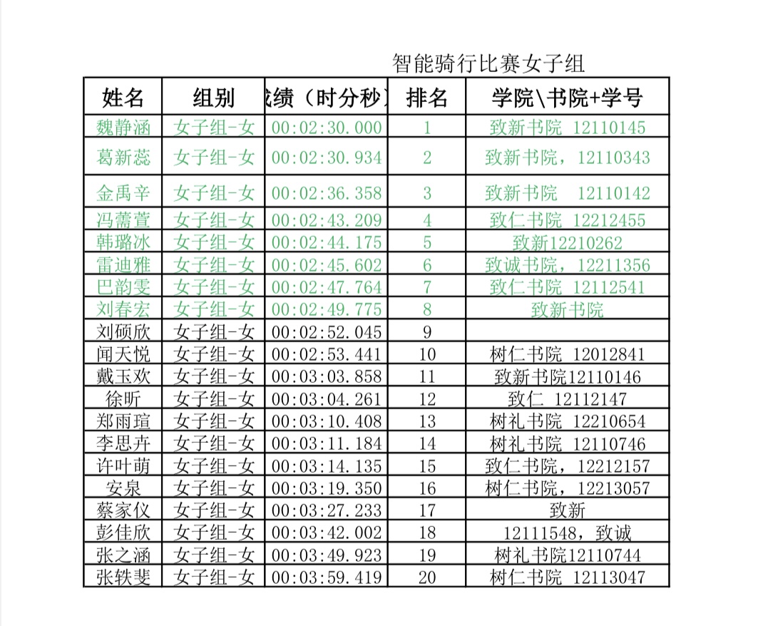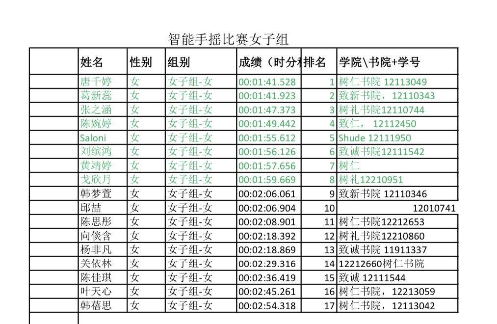 本次比赛个人赛成绩如下: