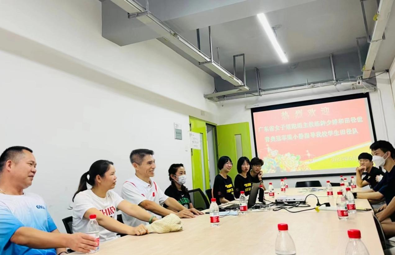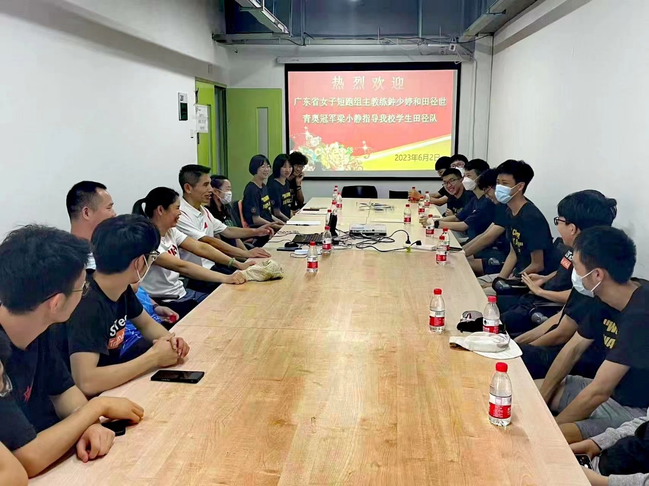 2023年6月2日上午,广东省女子短跑组主教练、国家级教练钟少婷和田径世青奥赛冠军、国际健将梁小静一行到访我校,校党委副书记工会主席张凌在办公楼会见了来宾一行并进行交流座谈。会谈结束后应体育中心主任董伦红邀请钟教练一行到体育中心与我校田径队学生进行交流并给予指导。