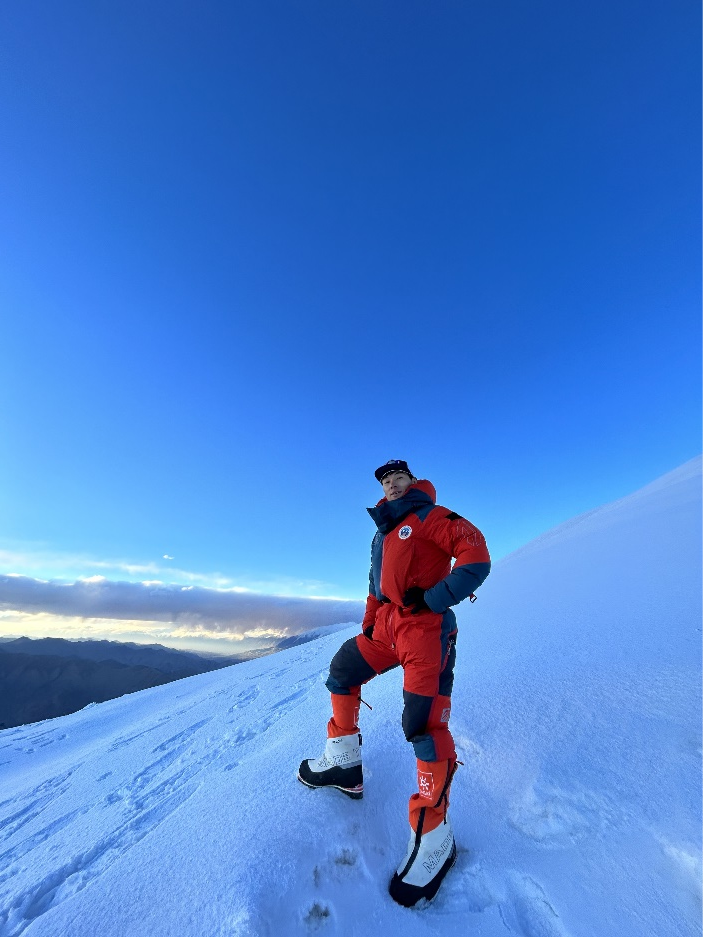 团队刚出发就遭遇风雪,在夜间的极寒、缺氧以及缺觉的条件下,他凭借顽强的意志信念,从风雪中走到了日出。时间定格于8点20分,罗林斯特成功抵达了顶峰。雪天的浓雾遮住了朝阳的浪漫,在顶峰,他拿出了随身携带的校旗,把自己最美的身影、对学校的热爱和祝福,烙印在了慕士塔格峰的山巅之上。这一幕壮丽景象正是南方科技大学“明德求是,日新自强”办学精神的真实写照,也是对我校办学理念和办学成果真实有力的诠释 。