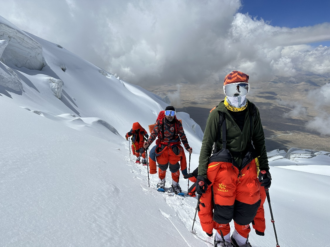 为完成此次登山目标,罗林斯特在部门领导与同事们的鼓励下,于今年四月份报国家体育总局审批。随后以攀登为中心,制定了12周体能训练计划。为了适应登山周期阶段训练,加强体能、力量训练并调整饮食营养,把身体调整到最佳状态。在此之前已积累多次长途户外拉练及海拔5000m以上雪山攀登经历。