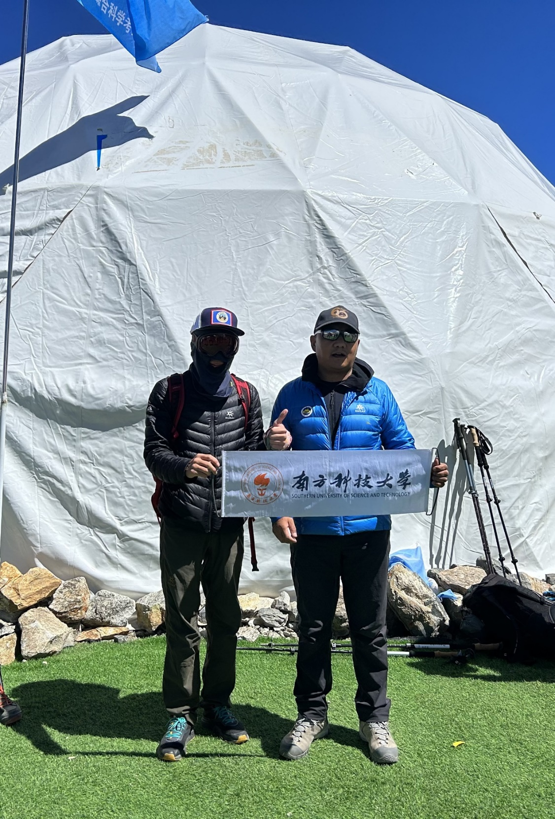 8月11日8时20分,南方科技大学校旗飘扬在海拔7546米的慕士塔格峰上。当日,我校教师罗林斯特成功登顶,并获得“国家一级登山运动员”称号。