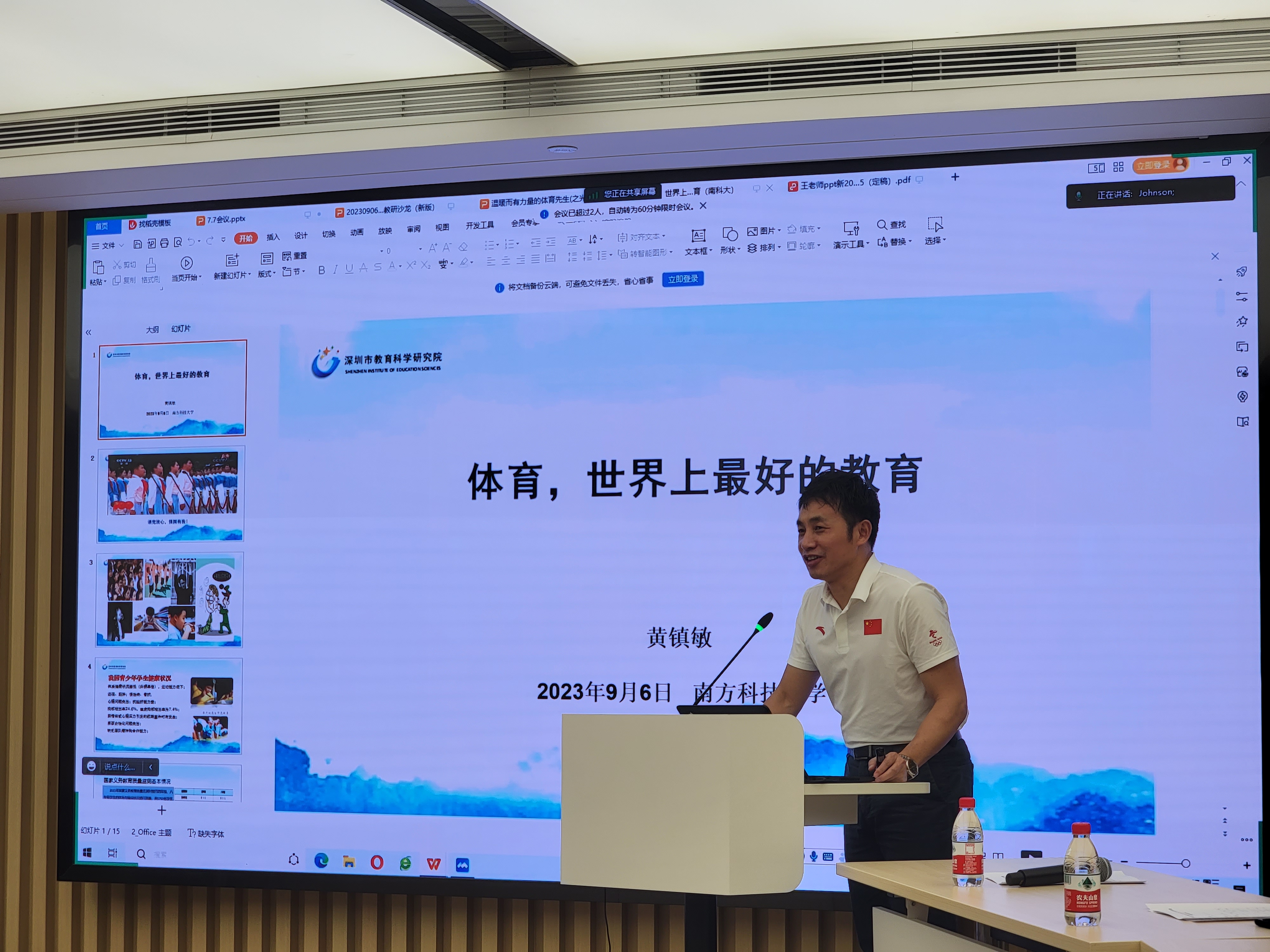 为进一步加强高等教育与基础教育互动互鉴,推进高校、中小学协同育人,9月6日下午在我校会议中心405开展体育名师工作室及青年教师培养研究沙龙。本次沙龙由南方科技大学体育中心主任董伦红教授主持,参加本次沙龙现场活动的有南方科技大学体育中心全体教师,此外还有哈工大体育部全体教师及深圳市部分中小学教师线上参加了本次活动。
