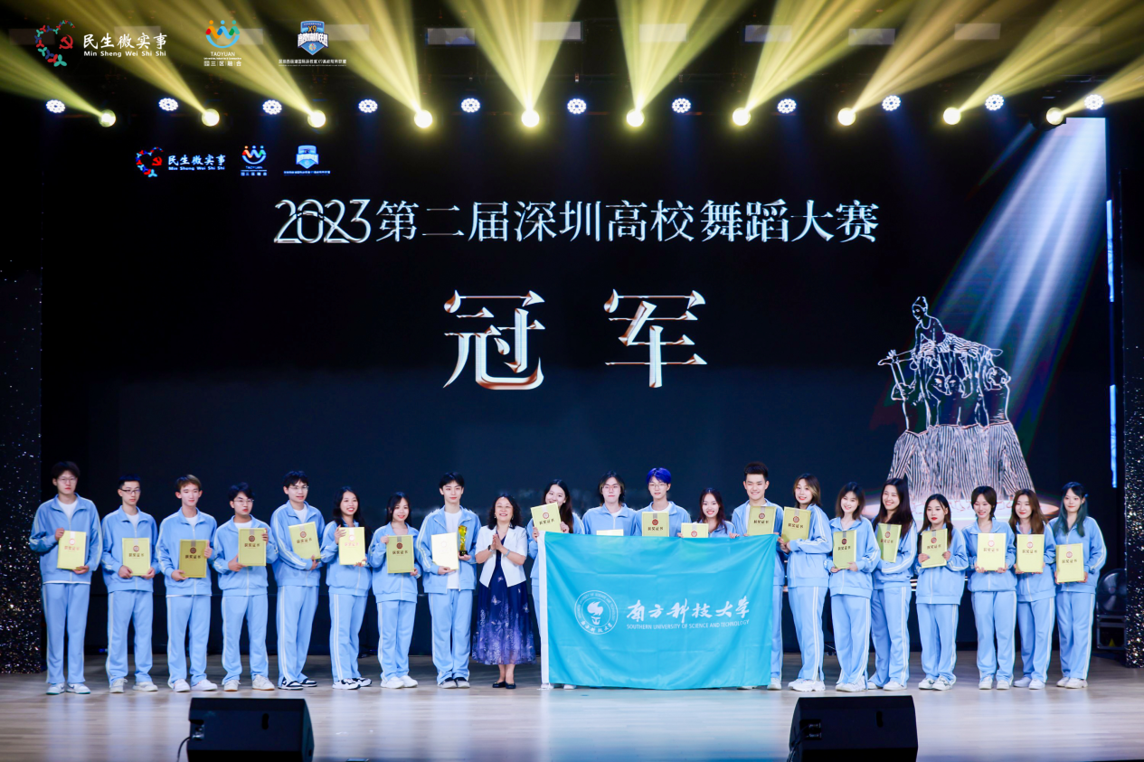 本次舞蹈比赛不分组别,深圳各大高校舞蹈队聚集于此,同台竞技,共同角逐桂冠。体育中心赖莎老师率南科大校舞蹈队参赛,夺得冠军荣誉。
