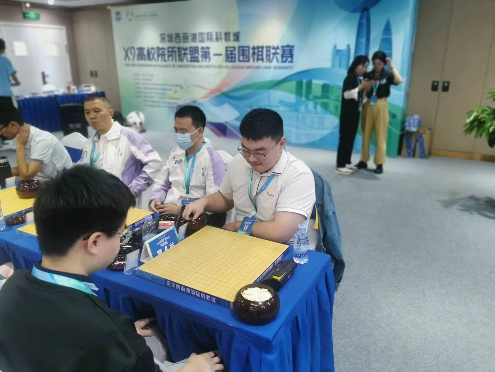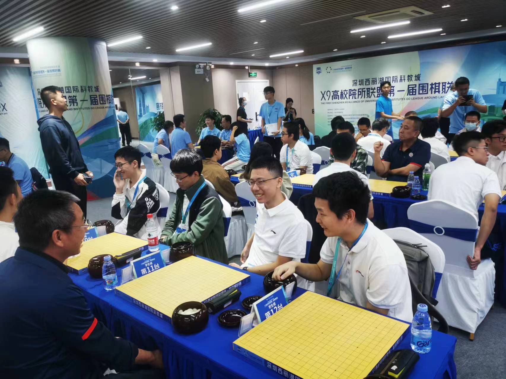 深圳x9围棋高校联赛于2023年11月12日-11月15日在广东省深圳市南山区大学城体育馆隆重举办。本次比赛迎来了本市9所高校同场竞技,参赛人数达三百人次,其中传统高校如:清华、北大、哈工深参赛队员中包含了多位深圳校友,其中不乏高手。我校由体育中心董伦红主任担任领队,侯思宇、梁锡元担任教练员带领学生围棋队参加了本次赛事。