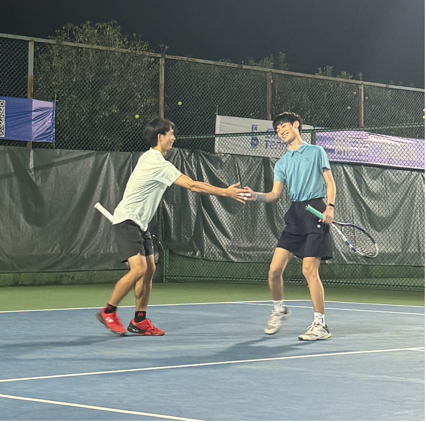 男双组合肖煜凡梁耀在比赛中击掌庆祝得分