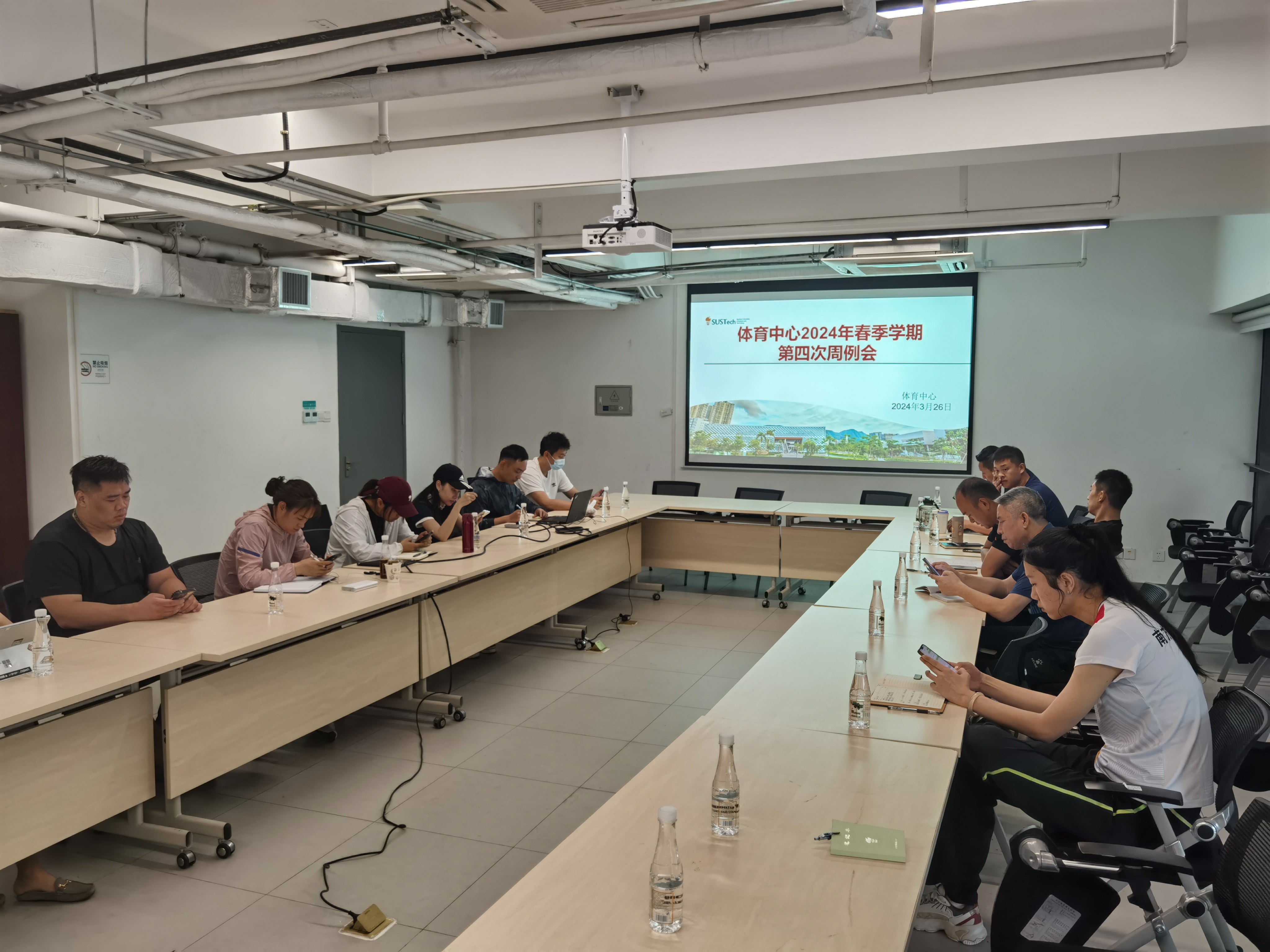 3月26日上午,体育中心主任董伦红在润杨体育馆会议室主持召开2024年春季学期第四次部门周例会,体育中心全体教师参加会议。 会上,运动会岗位负责人通报了2024年春季运动会方案并部署了分工安排;运动队岗位负责人介绍了运动队考勤工作安排及明确了新建运动队申请制度。 董伦红主任在会上强调,部门各教职员工要认真落实好春季运动会工作部署,认真做好运动队管理,切实提高部门管理工作效率和质量。