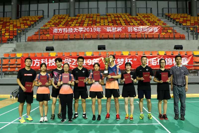 2019年5月11-12日南方科技大学2019年“筑梦杯”羽毛球锦标赛在润杨体育馆羽毛球场进行,本次大赛为团体赛,6个书院与研究生院组队参赛,比赛项目为男子单打、女子单打、男子双打、女子双打与混合双打。经过激烈的角逐,树德书院获得冠军,研究生院与树礼书院分别荣获亚军和季军。 精彩时刻: