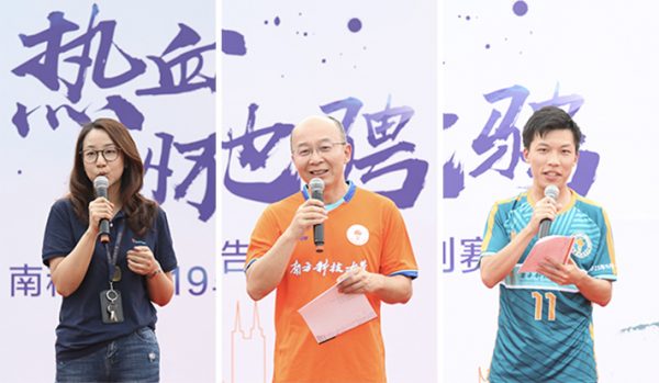 2019年5月11日下午,以“热血青春,怀梦驰骋”为主题的南科大2019毕业季足球告别赛在松禾田径场举行,南科大2019届毕业生队、教工队、校友队、在校生队四支队伍进行了友谊赛。活动由校友会、体育中心、炽焱足球社联合举办。