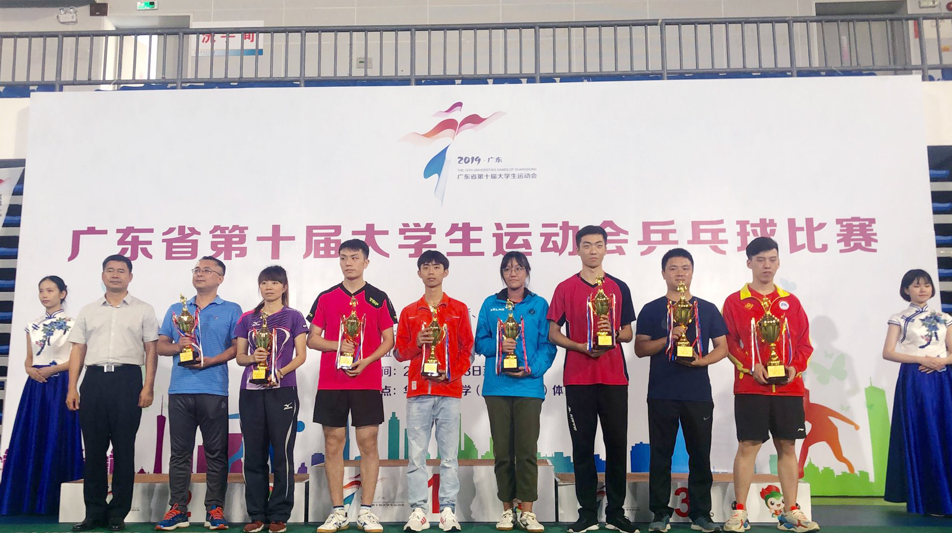 2019年5月6日至5月31日,广东省第十届大学生运动会在广州举行。在乒乓球比赛中,经过一番激烈角逐,我校2016级学生张伟、2017级学生韩建政获得甲组男子双打冠军,这也是我校在本次大运会上摘得的首块金牌。