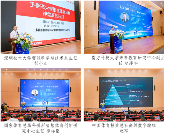 在高端讲坛环节,南方科技大学未来教育研究中心副主任赵建华剖析了《人工智能与教育:转型与重塑》;深圳技术大学智能科学与技术系主任彭小江教授报道了《多模态大模型在体育和精神健康的应用》;国家体育总局科研所智慧体育创新研究中心主任李祥臣分享了《我国体育人工智能化发展方向》;中国体育报业总社高级数字编辑、中国高校校办产业协会数字体育工作委员会秘书长赵军教授介绍了《青少年体育大数据运营内容运营“1+1+1”模式》。