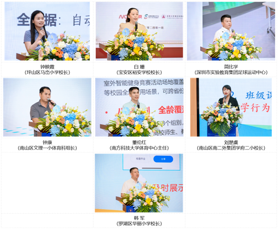 值得一提的是,论坛设置了校园一线实践分享与行业专家技术解读联袂出场的板块。来自7所学校校长及教师代表展示了所在学校的校园体育应用AI技术的实践成果和经验。这7所探索先驱的学校所分享的内容是:南科大体育中心董伦红主任分享《智能化健身设备助力大学校园教学与赛事创新》应用;坪山区马峦小学钟映霞校长展示了《AI 随心运动系统 提升小学体育“学/练/赛/评” 》;裕安学校白姗校长揭秘《校园全场景AI视频+数据服务系统赋能学校体育》;深圳实验集团简比学总教练畅谈《人工智能助力校园足球全数字化“学练赛”》;南山区文理实验学校钟康庚老师介绍《可穿戴强度控制系统》;学府二小刘楚虞校长聚焦《数智化全天候监测》;华丽小学韩军校长则阐述《AI技术生态体育构建》。